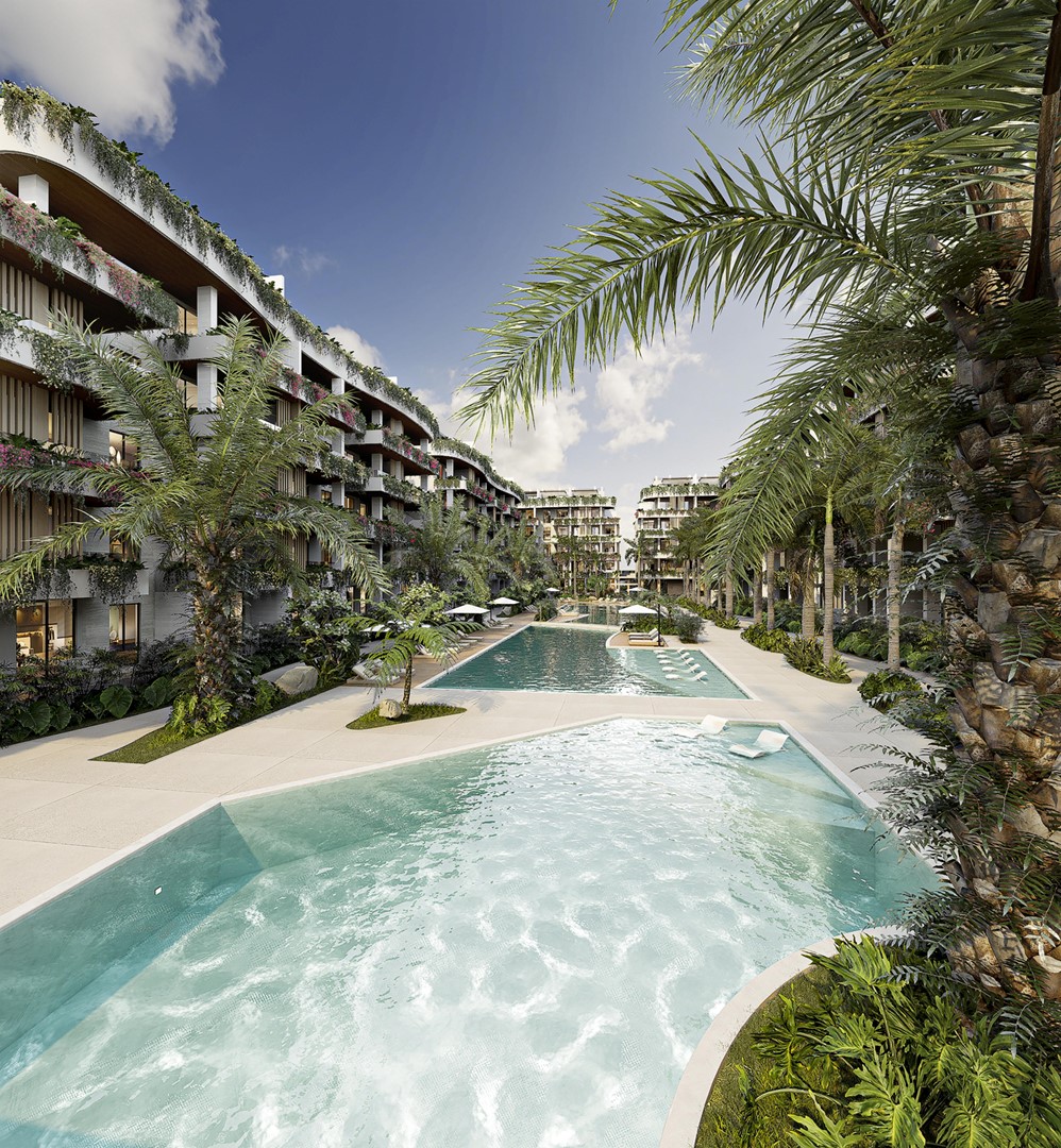This spectacular project has 287 apartments of 1 and 2 bedrooms in 5 levels with terrace, Penthouses with private pool and 2 underground floors with parking.