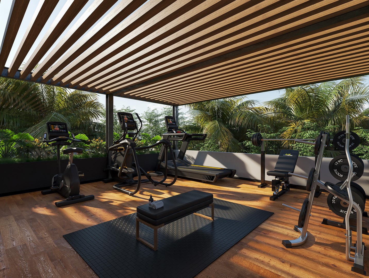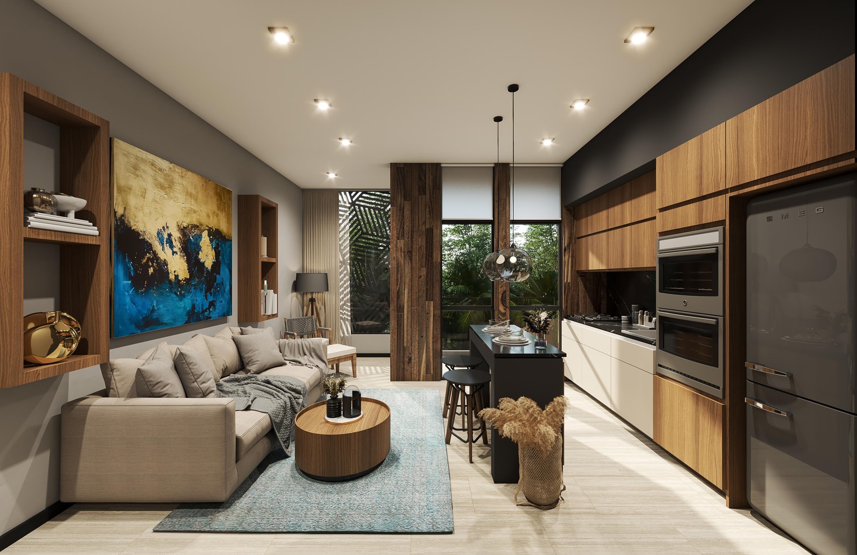 Also, for your enjoyment and comfort, the development features a reception, a coffee shop, a gym, and an amazing rooftop with an infinity pool and an incredible view to the ocean and the greenery of the federal reserve.