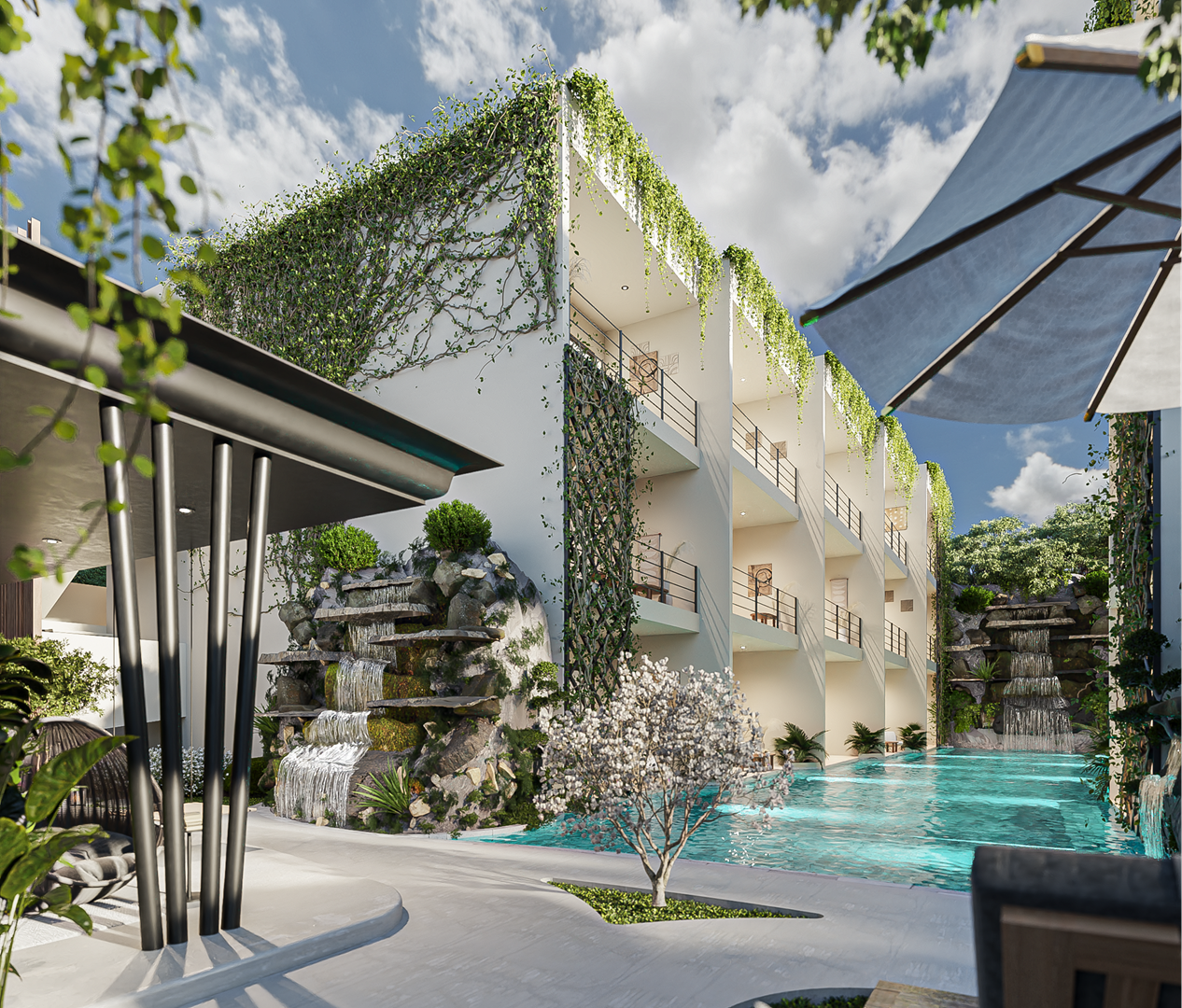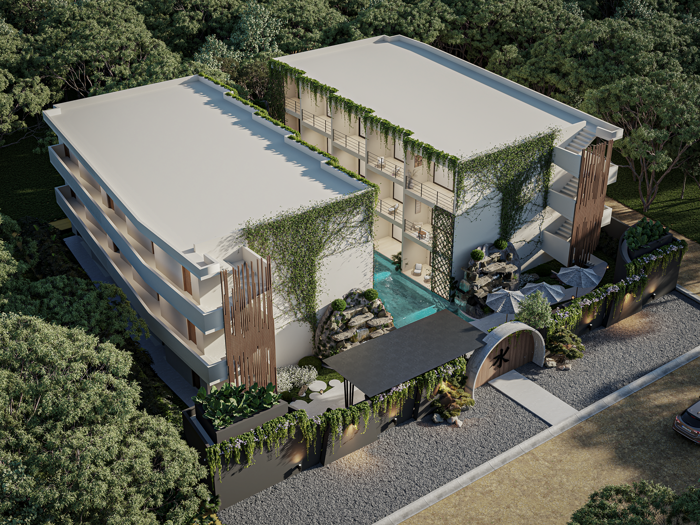 Inspired in Japanese architecture and having water as its main element, Mizu, the latest delivery from the Areia Group, offers an ambient of peace and tranquility surrounded by waterfalls, with the quality that has positioned the Areia Group as one of the most relevant developers in the Riviera Maya.