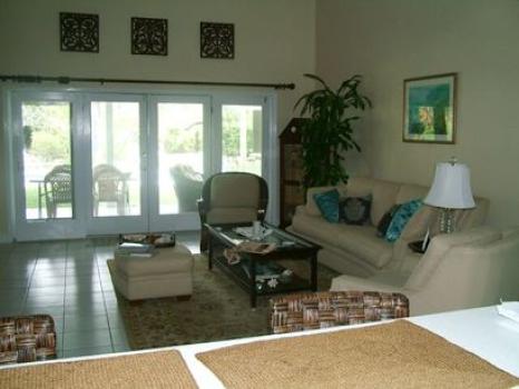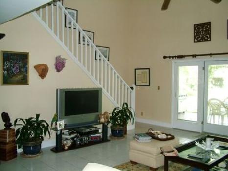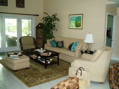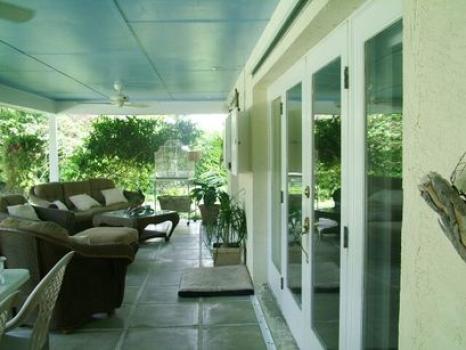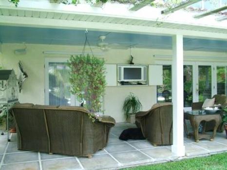 This home is ideally located in the community and has great curb appeal, shaded outdoor living area and barbeque, pool and lush tropical gardens. You enter into a foyer that is highlighted by a magnificent chandelier. The living areas open floor plan gives a feeling of space and flows easily into the outdoor living space. Enjoy quiet family meals or entertain guests on your own private patio overlooking beautiful lushly landscaped garden and pool. The outdoor living area is equipped with the elegant outdoor wicker patio furniture, outdoor stereo system, gas barbeque and a flat screen TV that tucks away when not in use. During the summer the outdoor living space is bathe with cool southerly breezes and for those hot summer days, you can lounge in the pool enjoying the cool water.
