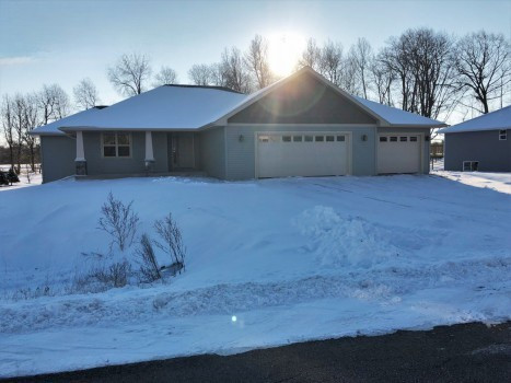 New 3 bedroom ranch home on large .79 acre lot located in Little Suamico. Enjoy the quietness this area has to offer from your large covered front porch with stone pillars. The open concept floor plan offers the perfect place to entertain. Home features a large kitchen island overlooking the living room & dinette, gas fireplace, coffered plastered ceilings in the living room, extra large walk-in pantry, master suite with walk-in shower & closet. Basement plumbed for additional bath and has exposure. Concrete 18’x30’ apron with gravel driveway. Includes passive radon system & 1yr warranty. Virtual staging in photos.