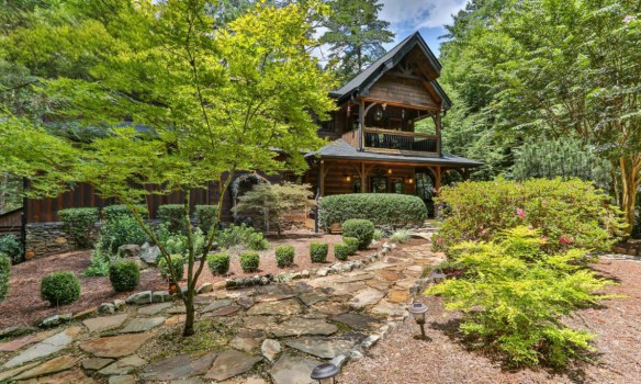 Take 515 North from the last light in Ellijay for 5.2 miles to a left on Whitepath Rd. Go .9 of a mile to left on River Bend Road, cross the covered bridge and continue for less than .2 of a mile. Briar Creek Rd will be on your left continue approximately 5 feet and turn right on River Bend Drive. Continue .3 of a mile the house will be in front of you at end of the road.