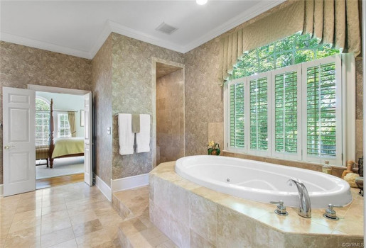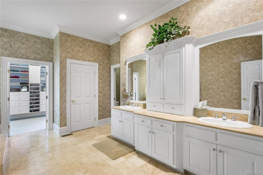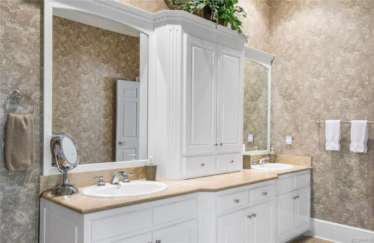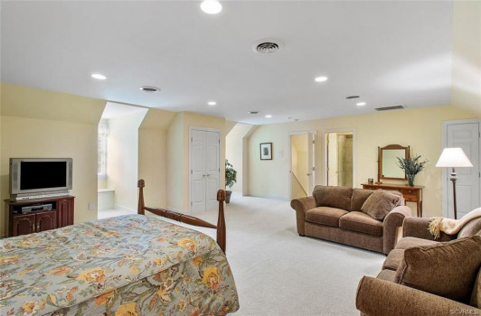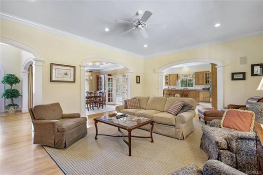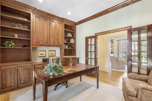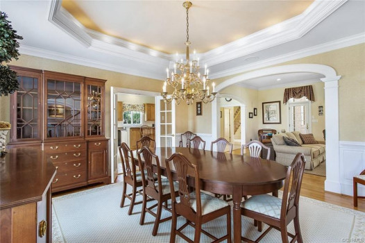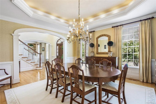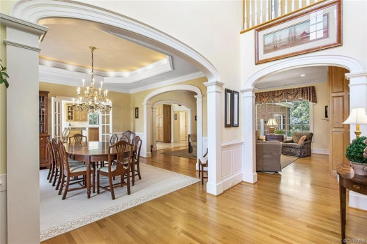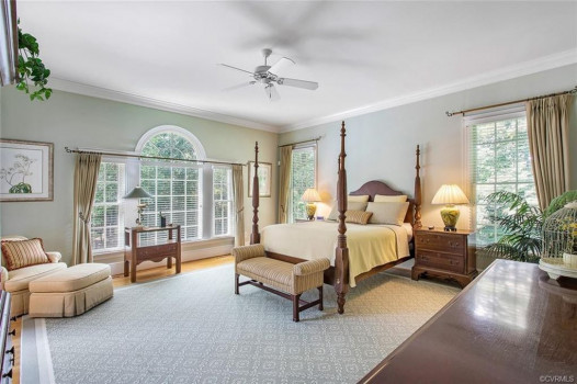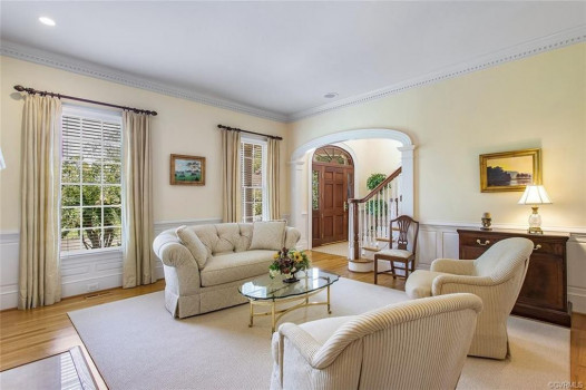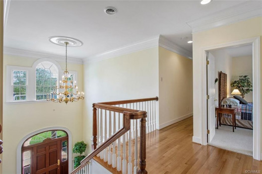 Gorgeous custom built William E. Poole designed Georgian home located on .89 acre cul-de-sac lot, in sought after Wyndham subdivision in Glen Allen. This beautiful home features an elegant 2 story foyer w/grand arches leading to a formal living room w/dental mldg, gas f/p, built ins & French doors. Formal dining room w/lighted tray ceiling, crwn/chr mldg opens to the sizable family room with c/fan, built-ins & gas f/p. Spacious kitchen w/tile flooring, granite c-top, custom cabinets, eat-in area, two tier center island w/smooth top cooking, & black appliances. Bright 1st flr master bdrm w/mstr bath w/Travertine tile flr, dbl vanity, jetted tub, 5x5 shower & 15x8 WIC. 1st flr office could be a 6th bdrm. Located on second flr are 3 generous bdrms all w/in-suite full baths, sizeable closets, and a casual rec room. The third floor has a 5th bdrm w/dormer wndws, dbl closet & full bath. Relax on the veranda or entertain family & friends on the large patio. Updates/upgrades include vertical grain hardwood flrs, Grand Manor roof replaced (2019), Anderson windows & doors, & custom trim throughout house. Convenient to award winning schools, parks, shopping, entertainment & restaurants.
