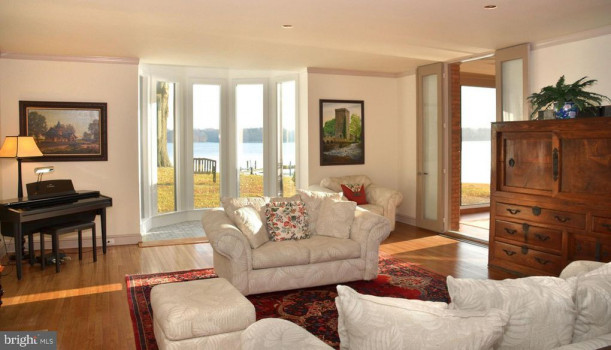 This home has a long and very interesting beginning as the Director's abode for the Aspen Institute. The Director's family and the Callahan's have been the only two inhabitants. The house was commercially built by Mr. Houghton whose pick of Architect was very influenced by Frank Lloyd Wright and was positioned very close to the Wye River which is unheard of now. When looking at comps realize that this property is closer to the water then most and has a high elevation from MLW. This provides for views from within the home that are unequalled in terms of water views. In fact some views are only of water giving the illusion that the home is actually built on the water. Breath taking. The short boating distance to the Chesapeake Bay thru Eastern Bay plus the sail boat depth water around Wye Island makes any boating possible. The pier is equipped with a power boat lift, jet ski lift and deep water for a large boat. Moreover the property is protected by Wye Island as a barrier to and along storms moving up the Bay. The views of Wye Island are unobstructed with Sunrises and Sunsets dancing off the water. The purchase of a contiguous 9.34 acres of land increases the nature appeal as well as privacy. Moreover, the land is contoured to easily contain a 5, 000 SF pond that would be inviting to nature and man. The Landscaping provides a patio on the water side as well as a patio with an enclosed court yard looking out on the nature side. The inviting front circle drive can be a setting for a theme of whatever interest the new owner wishes. This home is located 5 miles from rout 50. Chesapeake College and an New Emergency Medical Center plus BWI Airport and Easton Airport are all very close plus 30 minutes to Annapolis or Easton and less then an hour to Washington DC. High speed Fiber Optics are now available. Buyer must promise to Dance the Moonlite nights away on the open deck off the Master Bedroom and enjoy the Beautiful Sun Rises. Simple stated enjoy all nature has to offer. Worth the visit.