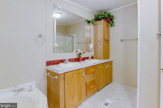 Spacious one level living, with 3 bdrm and 2 bath. Soaking Tub and Shower, Covered Deck, Carport, and Driveway. Super convenient location near Rts. 50,66,28 and Dulles Toll Rd. Community Pool. This is a land lease for $1208 monthly plus structure. ++The Meadows of Chantilly is a land lease community. This means you purchase and own your home, but rent the land. You do not own the land upon which you are living and there is no option to purchase the land along with your home. Market lot rent is currently $1208 pet month for this unit. The services are included in the lot rent:Grass mowing, snow removal, excluding personal driveway, repair and replace sidewalks and roads, club house with big screen tv for rent at no cost for private parties (insurance required), swimming pool, fitness center, courtesy officer at entrance, twice a week trash pickup, all real estate taxes except for personal property taxes.