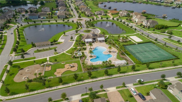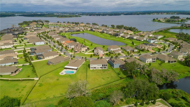 Luxury, Elegance, and Panoramic Lakefront Views await you in this Stunning Executive Home in the Premier Central Florida Community of Hickory Hammock. The massive and extra wide waterfront conservation lot offers plenty of privacy and backs up to John's Lake which connects to the highly sought TOP BASS FISHING 8,692 ACRE CLERMONT CHAIN OF LAKES!! Public Lake Access Ramps and docks are 5 minutes away. The stunning curb appeal of this lovely home leads you into a voluminous foyer. The sweeping side wrapping stairway sets the stage of the grand entrance featuring a spacious formal dining room perfect for the most elegant dinner party. The serene conservation and water views compete to steal your eyes from the kitchen, but the Designer package Gourmet Upgraded Kitchen with full double Islands, gas range and vented hood will win every time! The kitchen is beautiful and spacious with glass front cabinets a generous kitchen is every chef and entertainers delight. This home is freshly painted throughout and awaiting your final touch of flooring selection which can be priced in addition to your offer and completed prior to family room across from the kitchen offers plenty of space and gorgeous scenic views from one of the TWO downstairs patios. Upstairs, the Master Suite and Game Rooms are both spacious and well appointed with breath taking second story lake Master's Suite upstairs balcony patio offers secluded quality time. The stunning features of this home is endless.