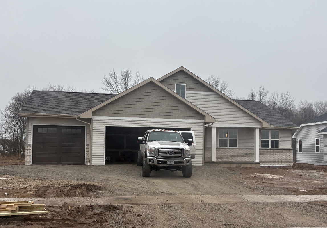 Gorgeous new construction featuring 1,706sf w/3 beds LR featuring a gas fireplace. Kitchen features an island/snack counter, SS dishwasher, microwave & large walk-in pantry. Master bdrm offers 2 closets, private bath w/double sinks & walk-in shower. Convenient 1st-floor lndry w/lockers & sink. Attached 3-stall garage. Full bsmt features egress window & plumbed for future bath. Exterior features horizontal vinyl siding per plan, shakes in roof peaks & brick per plan. Front rendering is computer generated. Virtual staging in photos.
