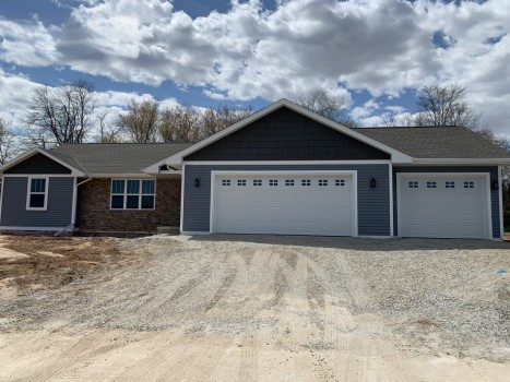 New 1411 sf, 3 bedrm, 2 bath ranch situated on .29 acre lot in Village of Howard. Located in a quiet S/D & close to future a park. Vaulted ceilings in LR, dinette & kitchen. Vinyl extended through LR. Custom maple cabinets in kitchen along w/an island, large pantry & SS DW & OTR microwave. Large master suite w/walkin closet & full bath. Full basement plumbed for additional bath. Att 3 car garage w/flr drain. Great curb appeal w/stone on porch & gable roof. Home incl passive radon system & 1-yr home warranty. Virtual staging in photos.