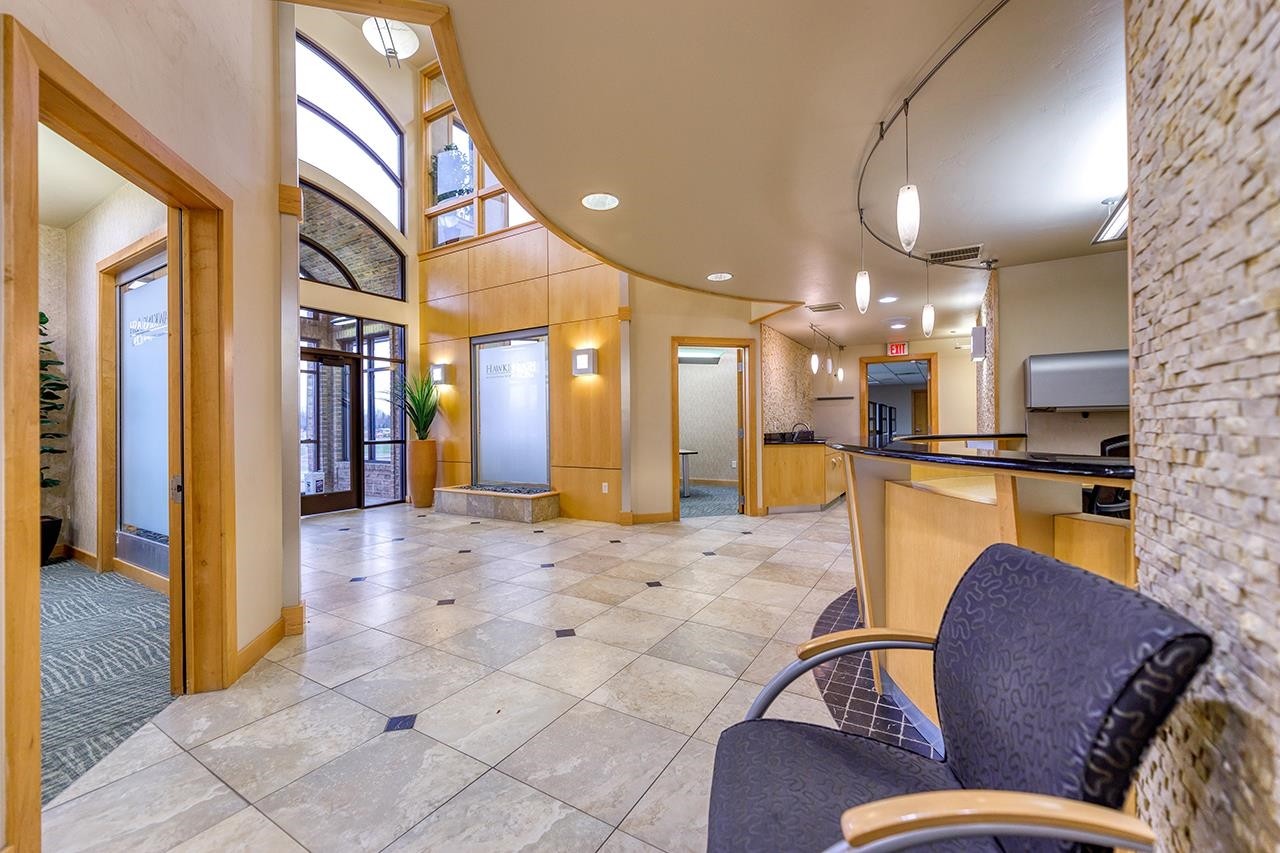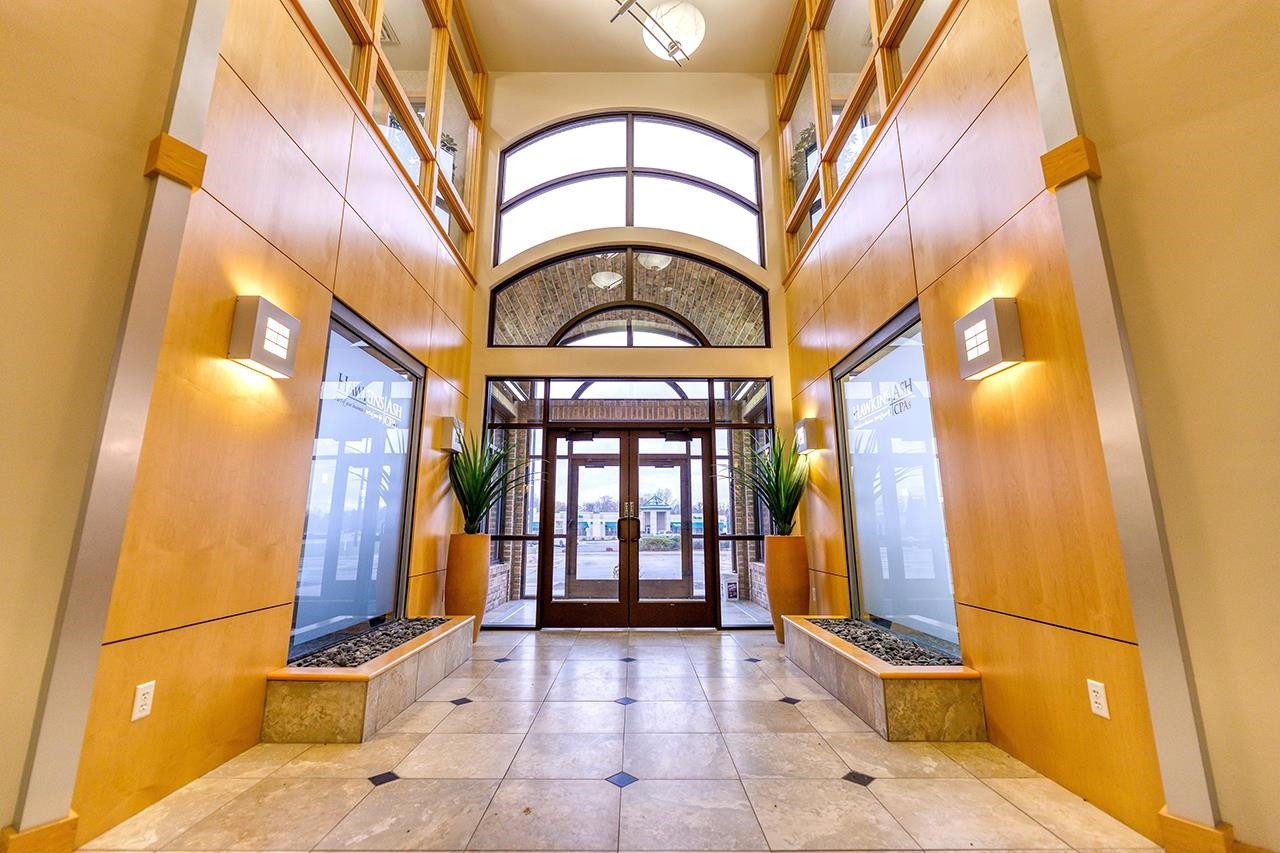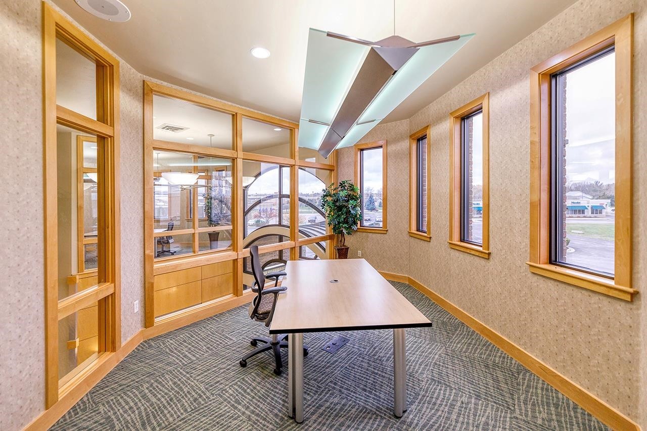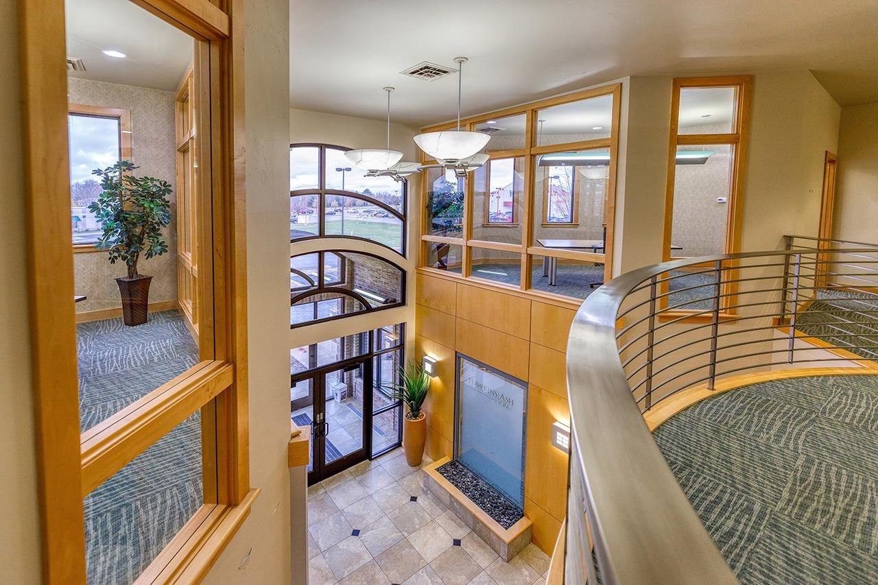 Beautiful Class A, 2-story commercial/office building, in an ideal location, close to Woodman’s and prime location along the I-41/Hwy 29 interchange, with highway visibility and easy on/off highway access. Featuring an elegantly completed 2-story lobby, with modern features including a large chandelier, pendant lighting, tile flooring, a coffee/wet bar, beautifully appointed conference rooms and meeting rooms, private offices, common working areas, a board room, an elevator, and an adjoining children’s play room. The newly remodeled lower level provides additional office space, ample storage, and a fully furnished break room. The exterior is nicely landscaped and features a large lit parking lot. Lease per month amount includes taxes, lawn care, and snow and waste removal.