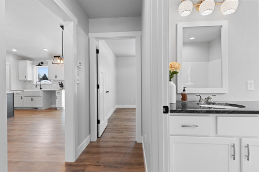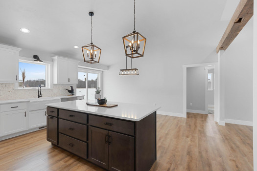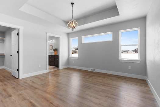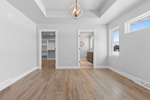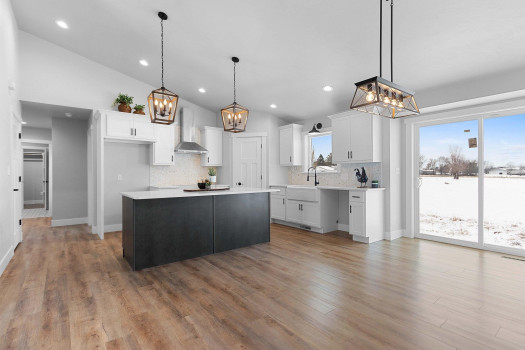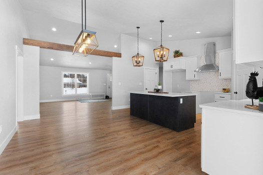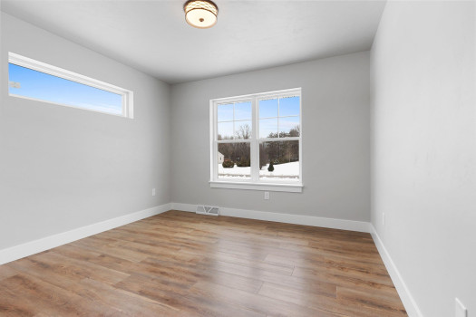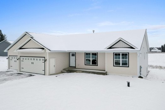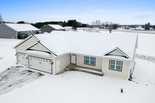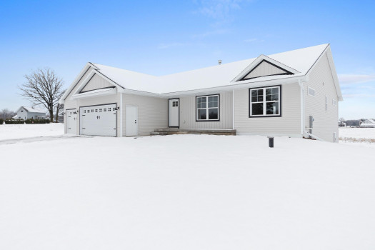 New custom built ranch style home on just under 1 acre. Split bedroom design with 4 bedrooms and 2.5 baths, 2,384sf. Transom windows, shiplap, beam features, and upgraded LVP flooring throughout. Large living room offers vaulted ceiling and gas fireplace with brick surround. Kitchen features oversized island farmhouse sink counter, 2 pantries, quartz counters, and soft close cabinets/drawers. Master bedroom features raised tray ceiling, private bath with granite dual vanity, custom tile walk-in shower, and large walk-through closet opening to the laundry/mud room. Full basement featuring great room with 4th bedroom or option for office/flex space. Attached 3-stall garage. Includes A/C, 1yr home warranty, radon vent, and restrictive covenants. Seller will review all offers as they are received. Please allow 48 hours.