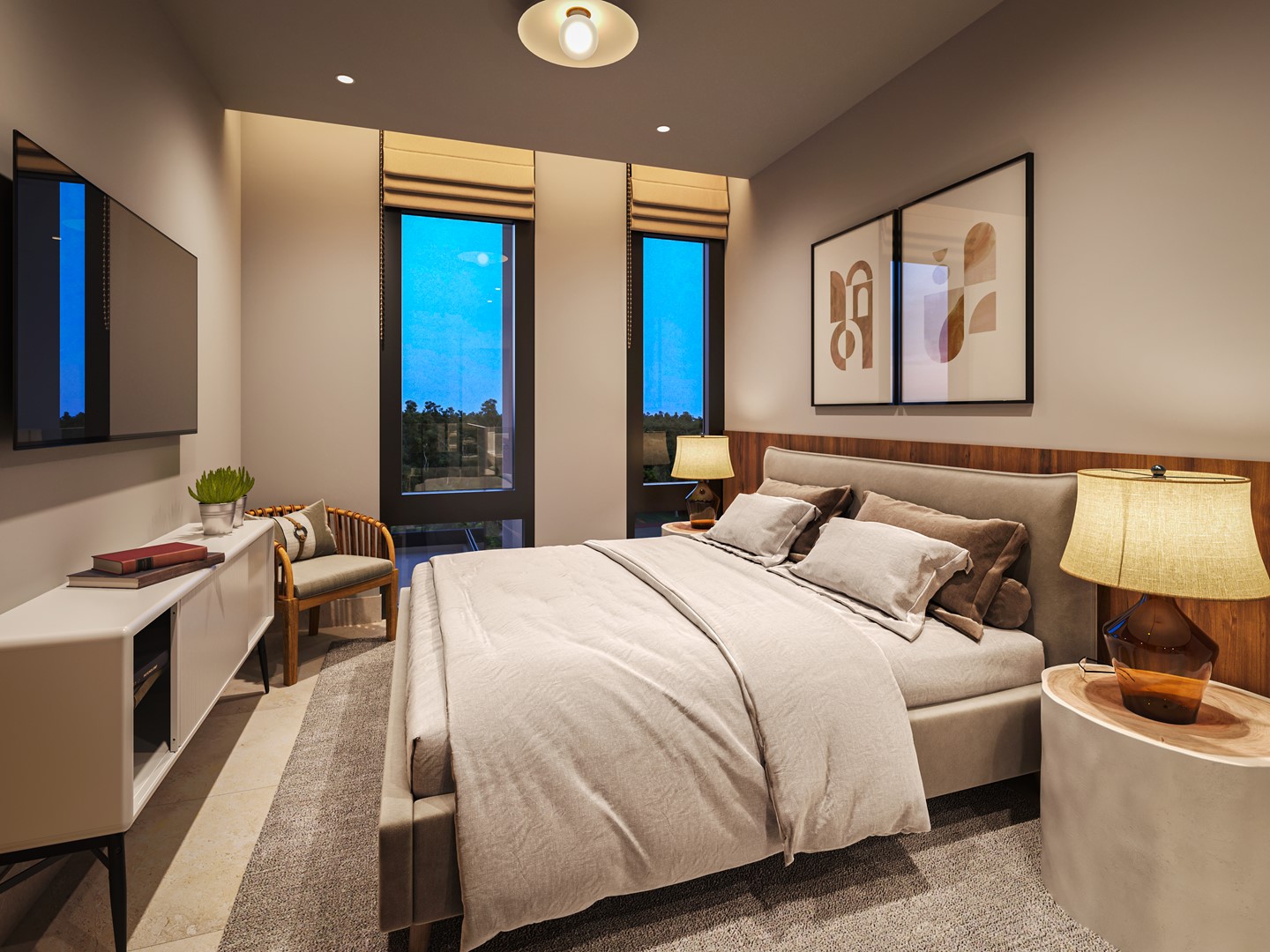 These 3-bedroom apartments feature terraces with park or golf course views, spacious layouts, and a fresh, contemporary design that blends perfectly with nature and community living.