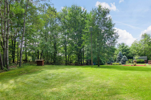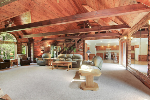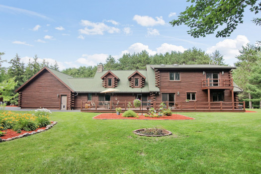 Meticulously maintained home with extensive landscaping! D Log home, freshly stained spring/summer 2018. New luxury vinyl planking in the kitchen brings a fresh new look to this open concept living space, perfect for family/friend gatherings. The wood burning fireplace soares over the great room, creating that cozy retreat. New carpet in the bedrooms invites you to stay awhile. Master suite boasts a large soaking tub and private deck. The heated attached garage is perfect for winters. Separate 3+ detached garage is for all those extras. Then you have the 30 acres of private woods with maintained walking trails for the nature activist. All of this within 25 minutes of Lambeau Field!