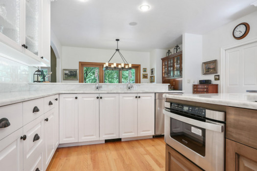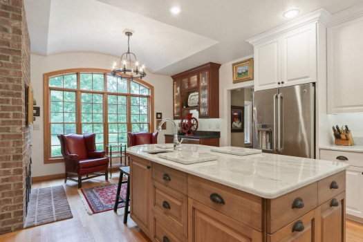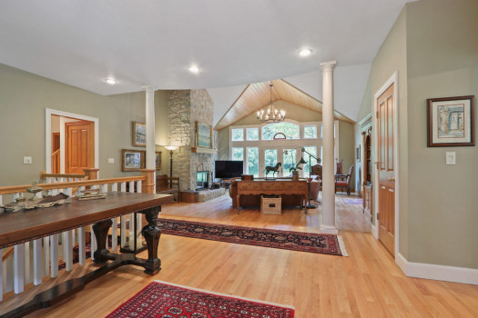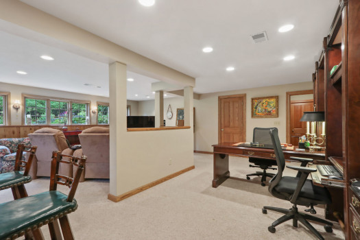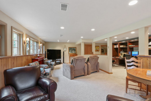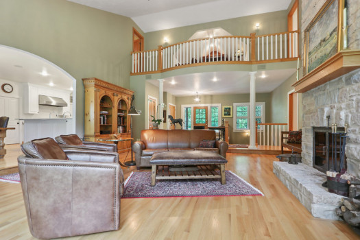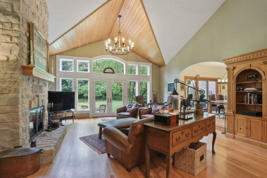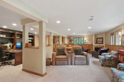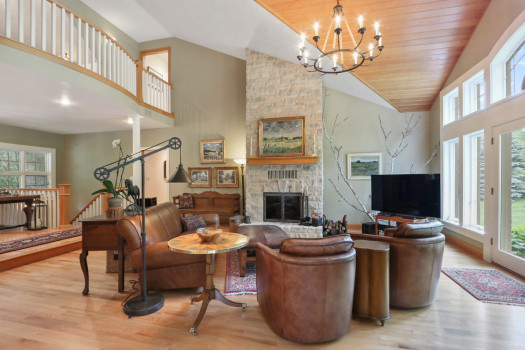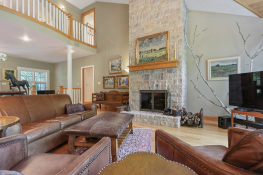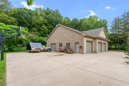 Country living at its best describes this spacious 4+ bed. 3 full & 2 half baths, 1.5 stories, situated on 5.25 acres of beautiful wooded property. Also includes 3.5 stall, 54x28 man cave, w/5 doors, fully finished, heated, full bath & upper loft area. Many updates include 2 new roofs, kitchen w/granite countertops, pantry, island, double sinks, high-end appliances and gas fireplace. Main level has a 2-story wood fireplace, 2 beds, 2 baths, & 2 sets of patio doors. Upper has 2 beds w/catwalk/loft/office area. Exposed lower w/wet bar, fireplace & half bath. Beautiful location w/wildlife everywhere and still located on the far west side of Green Bay!!