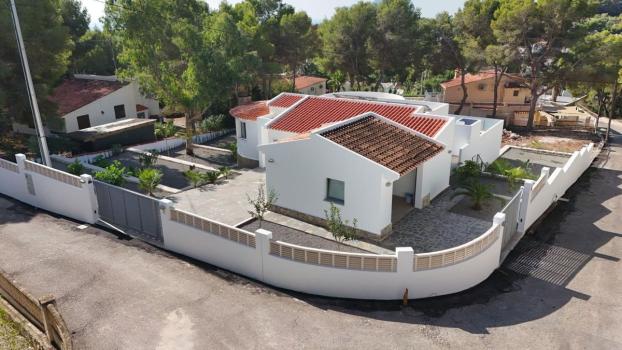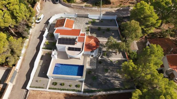 Beautiful renovated villa with pool and sea views, in the Fanadix area, Benissa. Mediterranean-style villa, divided into 2 floors, includes 4 bedrooms, 2 bathrooms, living room with equipped kitchen, closed garage with laundry room, terraces, private pool and large garden. Completely renovated with excellent qualities, such as aluminum exterior carpentry with thermal break and double glazing, Venetian blinds and mosquito nets, interior carpentry and white lacquered built-in wardrobes, porcelain stoneware floors, air conditioning, kitchen equipped with appliances, hot water through solar panels and accumulator, LED lighting, alarm, garage with motorized doors, fireplace in the living room, etc. Located in the Fanadix area, between the towns of Calpe and Moraira, in a quiet area of similar homes, with large trees, close to the beaches of Baladrar, Advocat and Llobella, close to the Bellavista Tennis Club, and with easy access by CV-745 and CV-746 roads to nearby towns and all types of shops and services.