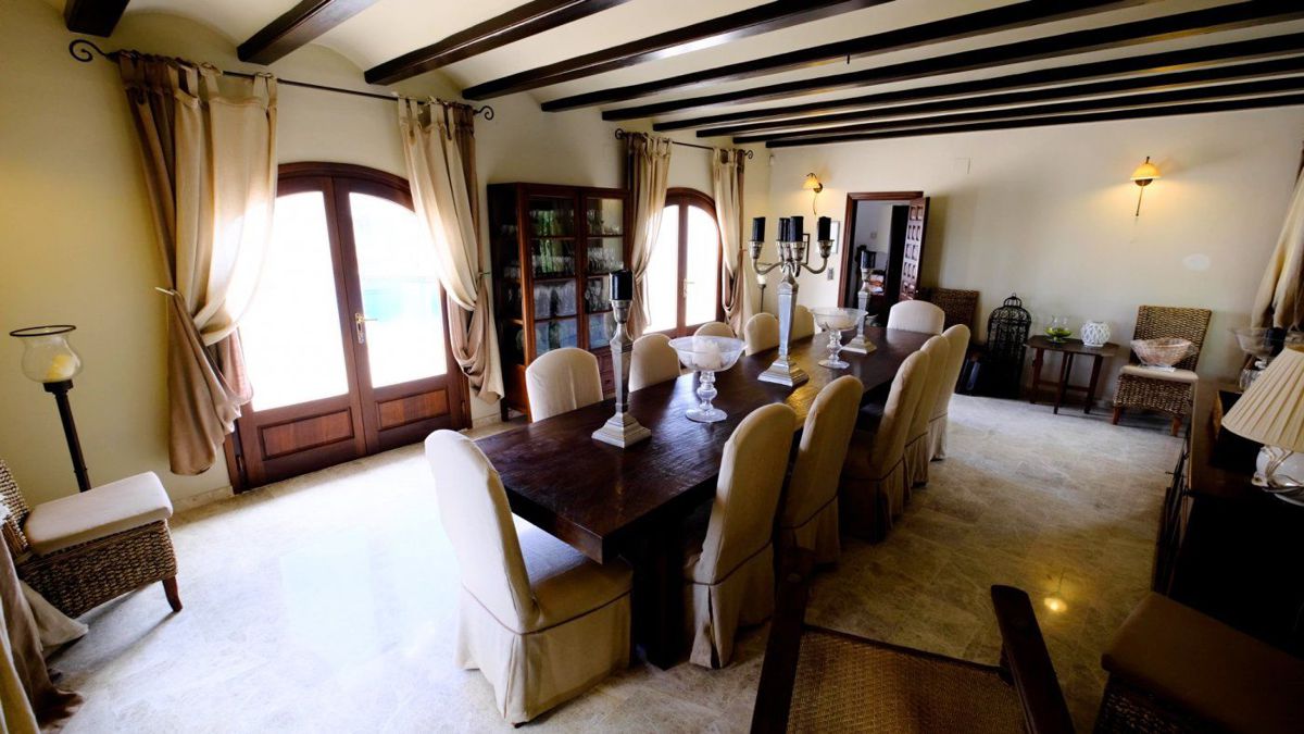 Luxurious manor house for sale on the coast of Benissa with an area of 600 square meters! The house is completely private, without neighbors and unnecessary noise with a beautiful view of the sea and the whole city of Moraira. The house has 4 bedrooms, 5 bathrooms, one with a jacuzzi, a kitchen, two living rooms, two dining rooms, two wood burning fireplaces, a terrace and two garages. In the courtyard there is a 6. 50 X 13 meter swimming pool. The house has three hot water systems - solar, electric and gas. The entire plot is a designer garden, fully automated. The views from the house open to the sea, mountains and Moraira!