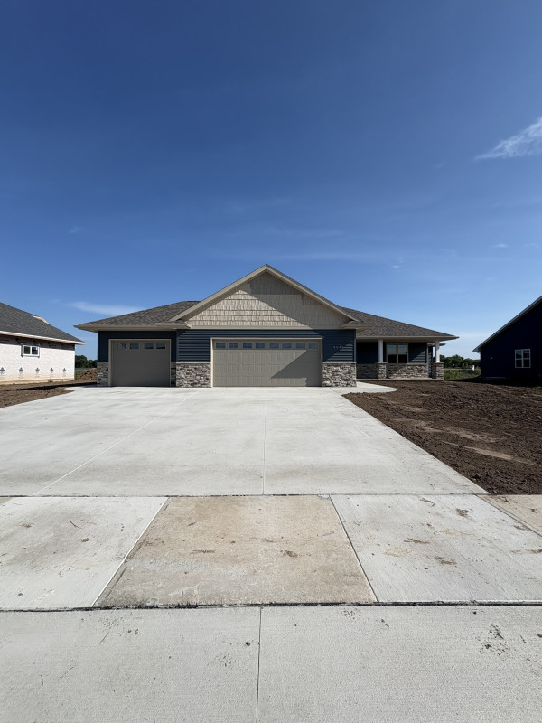 Charming 1,753sf ranch home, newly constructed in Village of Howard, offers thoughtfully designed split bdrm layout. Feat. 3 beds & 2 full baths, covered front porch w/porch posts, welcoming foyer, & cozy LR w/gas fireplace & coffered plaster clg. Kitchen includes a lrg island w/sink, custom maple cbnts, walk-in pntry, & SS dishwasher & microwave. Dinette opens to backyard via patio doors. The master ste offers generous walk-in closet & private bath w/double sinks & walk-in shower. Enjoy the convenience of a 1st-flr lndry room w/sink. Full bmst is ready for future customization, w/egress window, plumbed for future bath, & access to attchd 3-stall grg. Extr features horizontal siding, shakes in rf peak & stone per plan. Virtual staging in photos.