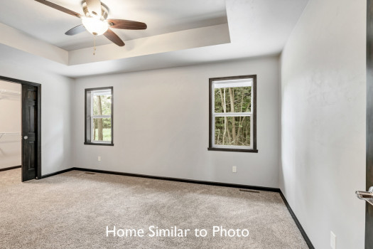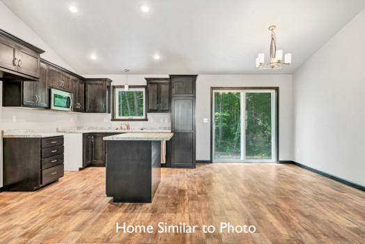 Newly constructed 1,411sf country lot on 2ac. Open concept floor plan offering 3 bdrms & 2 full baths. Kitchen features include custom maple cabinets, island, large pantry & a SS dishwasher & microwave. Home has a split bedroom design allowing privacy for the master suite, which has its own walk-in closet & private bath. Full basement w/exposure that is plumbed for a future bath. Driveway: 18’x30’ concrete apron w/a gravel driveway. Home includes passive radon system & 1-yr home warranty. Main photo is similar but may not be exact. Virtual staging in photos.