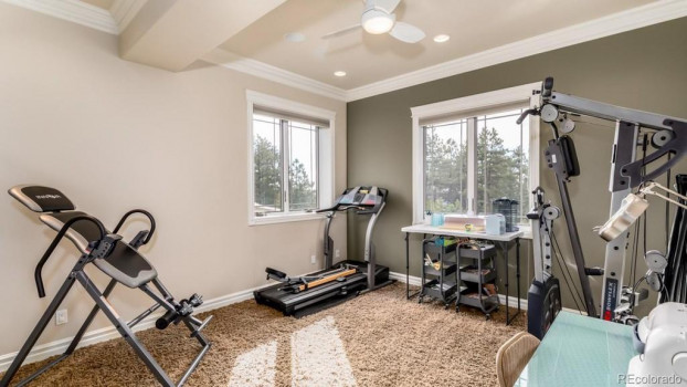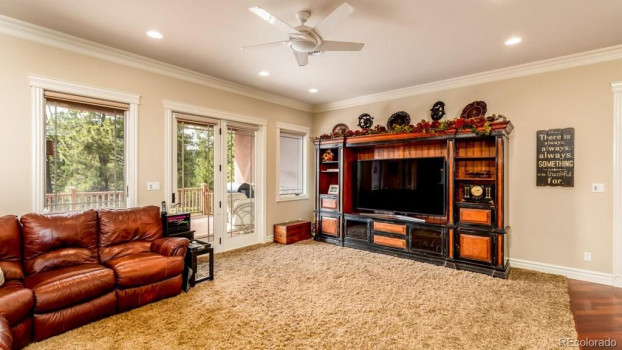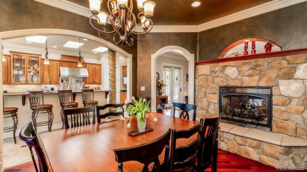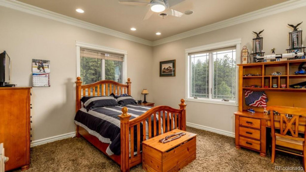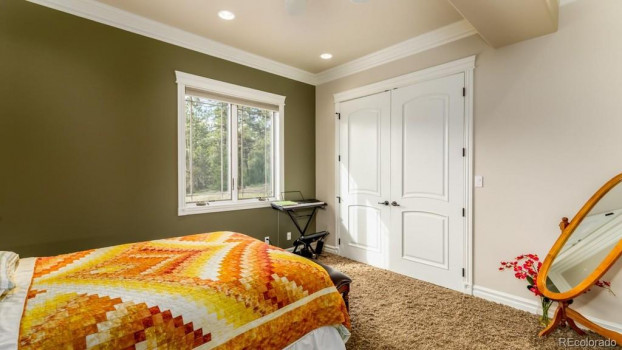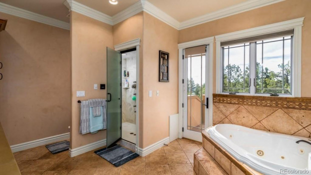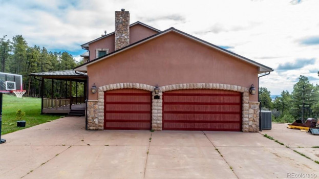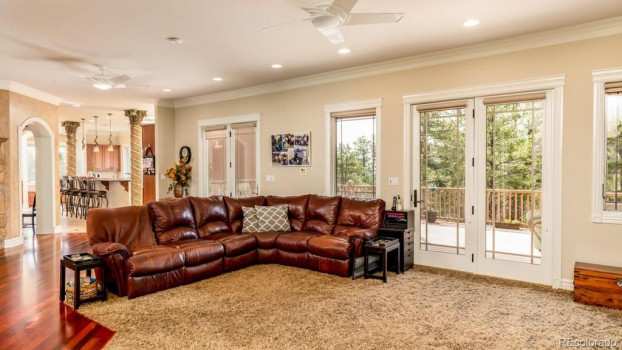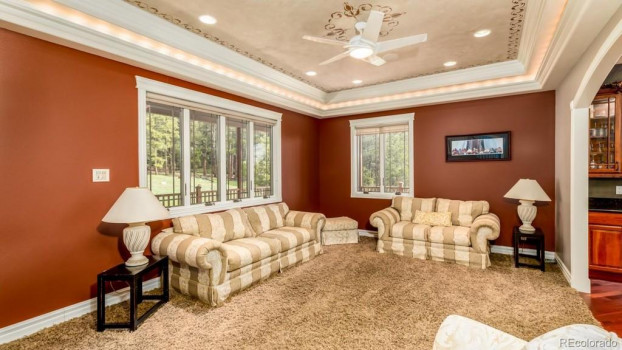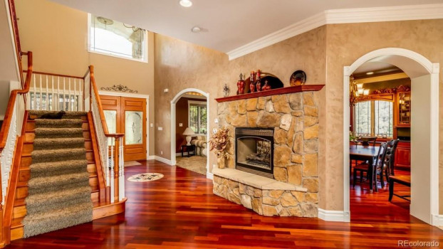 Majestic five bed, five bath home nestled on 40 acres within premier gated community. Grand 22' entryway has sweeping staircase and Brazilian cherry hardwood floors with commanding marble inlay. Countless custom features/upgrades, no detail overlooked. Gourmet kitchen: Jenn-Air appliances (6 burner gas stove w/griddle), 14th century hand carved teakwood columns from India, Travertine tile floor, expansive granite counters, and pantry w/ automated lighting. Open concept formal dining (to formal living) through archway showcases two-way fireplace to foyer. Library and laundry on main level. Master suite is 650+ sq ft and boasts corner fireplace, private balcony, walk-in closet w/ designed shelving system. Five pc en suite master bath features steam shower with 2 shower heads & 9 body sprays, heated jet tub, comfort height vanity w/ dual sinks and Travertine floors. Home was built with 2x6 walls and BIBS (blown-in blanket system) insulation & Niles int/ext sound system. 10' ceilings & crown molding throughout all levels, 8' solid core doors, lighted tray ceilings, venetian plaster walls, Anderson windows, 2018 central air unit, Tarm dual fuel wood/propane boiler w/ 10 zones, in-floor heat, & heat storage tank. Walkout basement has huge family room, wet bar (copper ceiling & sink), tiered theatre room. Outdoor highlights: stamped concrete patio, numerous covered decks, metal roof, copper gutters, block retaining walls and even a shooting range. Oversized 3 car attached garage.