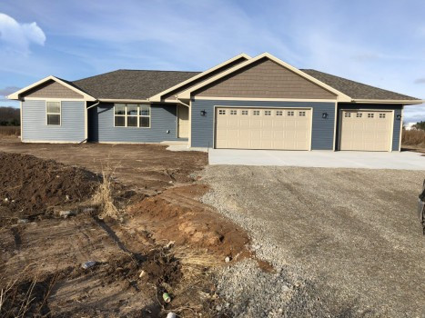 New 3 bedroom, 2 full bath ranch on spacious 2.59 acre lot. Cathedral ceilings in dinette, kitchen and living room give the home a spacious feel along with the open concept design. Home offers convenient 1st floor laundry, custom maple cabinets in the kitchen, large island, pantry, SS dishwasher & SS microwave. Master suite features a tray ceiling, generous walk-in closet & private full bath with walk-in shower. Basement is plumbed for additional bathroom. 3 car attached garage. Driveway to be 18’x30’ concrete apron with gravel driveway. Home includes passive radon system and a 1-yr home warranty. House plans and main photo are similar but may not be exact.