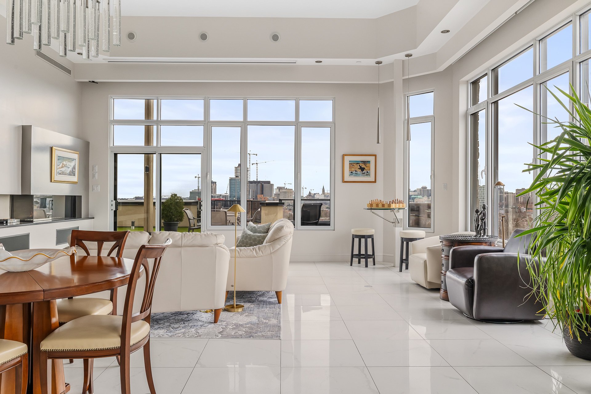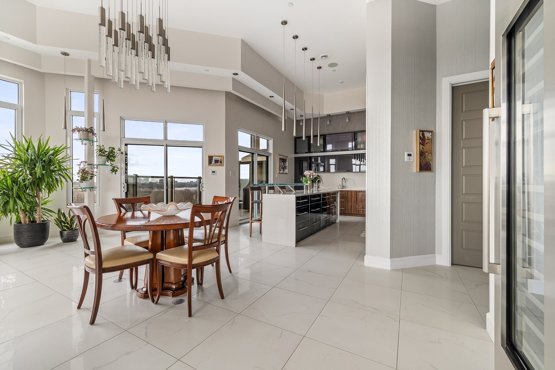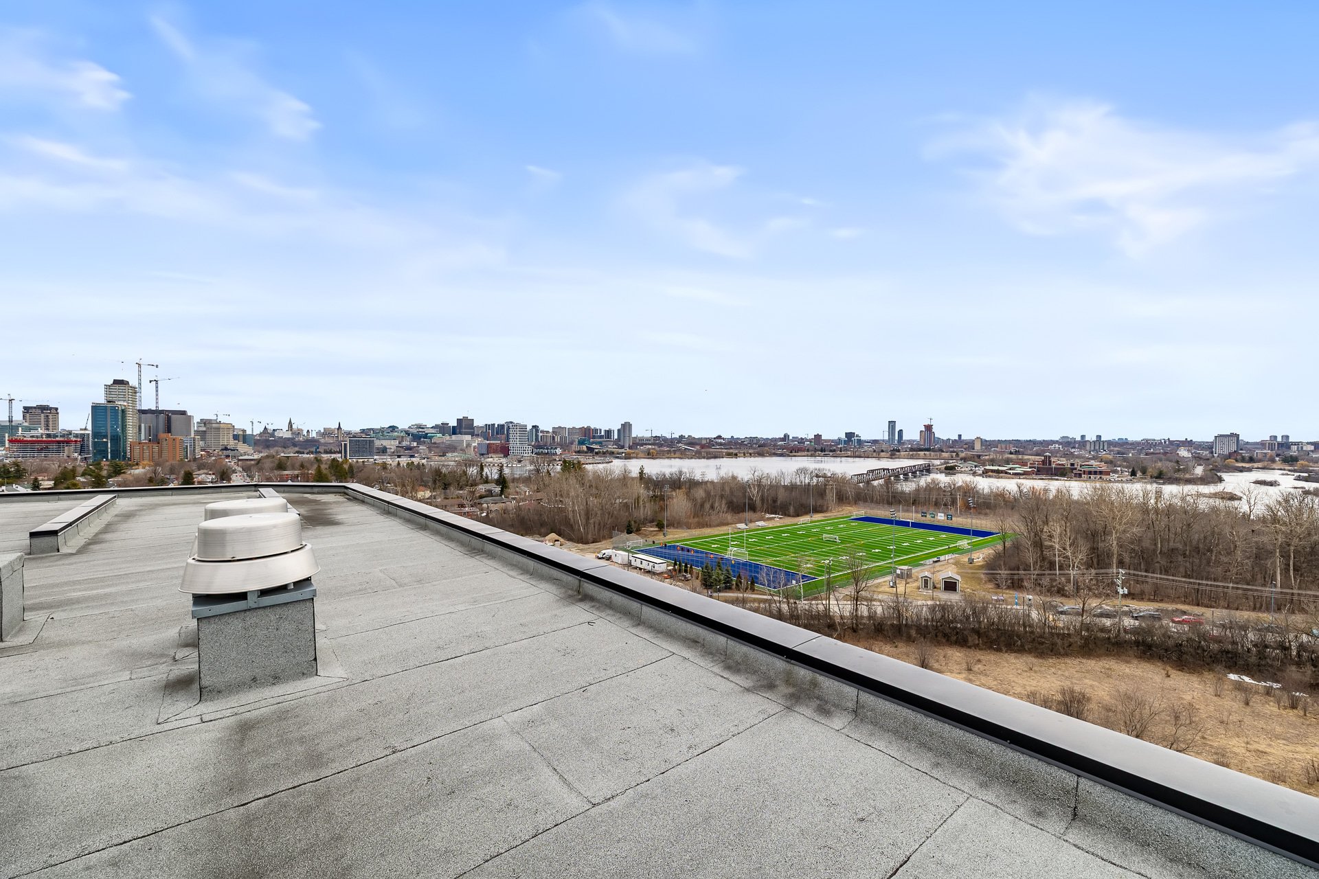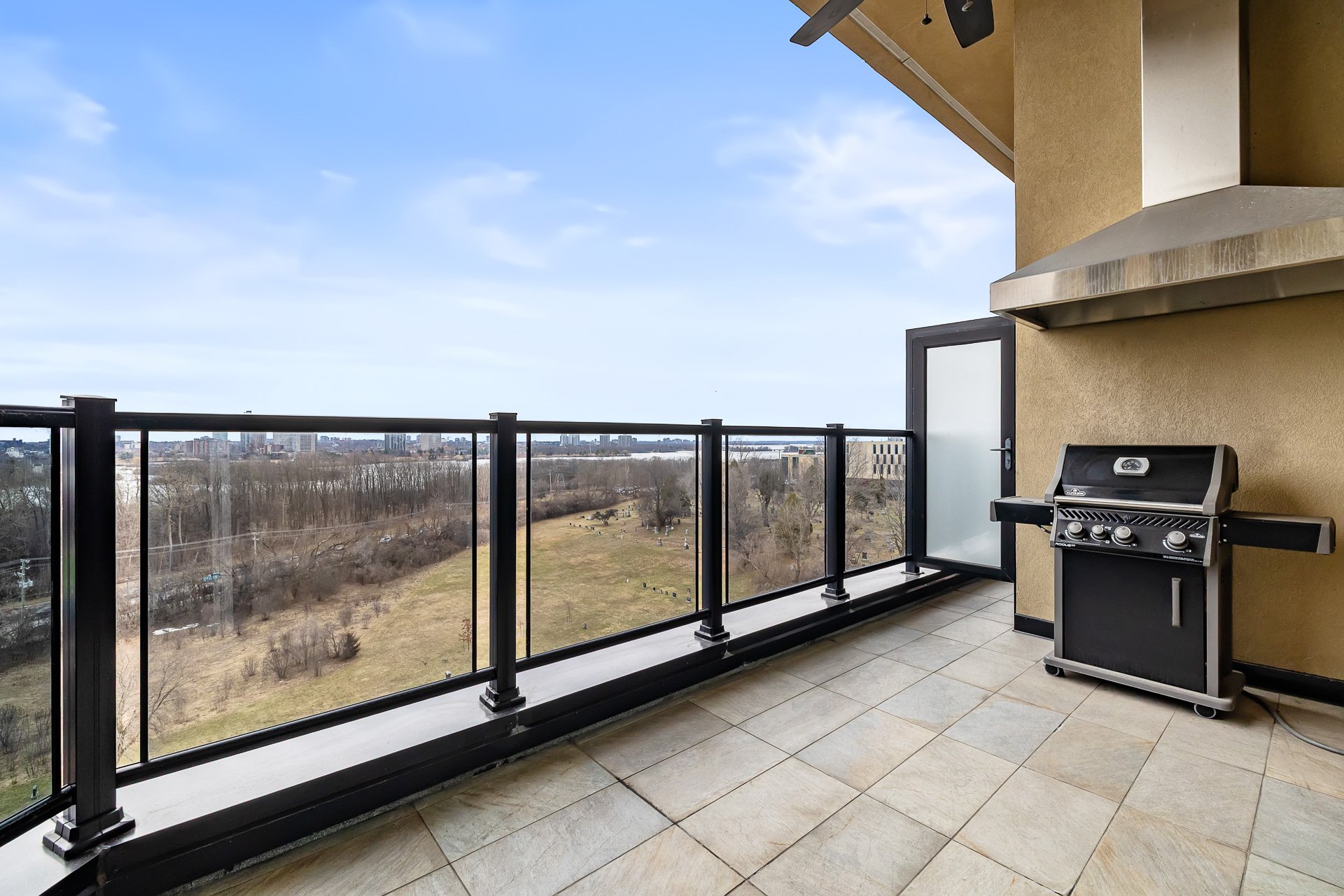 Discover this one-of-a-kind majestic penthouse offering breathtaking panoramic views of Ottawa, Hull, and Gatineau. Perched at the top, it features a massive concrete stone terrace with a gas fireplace, a balcony with a built-in BBQ and stainless chimney hood, along with multiple gas outlets for an unmatched outdoor living experience. Inside, you'll be captivated by the abundant natural light, 14-foot ceilings, and ultra high-end finishes. The home includes three bedrooms, a private four-car garage, and a private multifunctional space--perfect for a gym, office, or studio. The magazine-worthy kitchen is equipped with built-in Miele and Fisher-Paykel appliances, an integrated flat-screen TV, two built-in wine cellars, a glass breakfast counter.The property also features a Crestron smart home system controllable by smartphone, managing audio, video, lighting, and motorized shades, along with a retractable screen and projector, five-zone radiant flooring, and a central vacuum system with integrated hose. The master suite is a serene retreat, complete with automated curtains, a private ensuite bathroom with double vanity, marble backsplash, a marble shower with multi-jet column, and a custom walk-in closet. A truly exceptional property where luxury, technology, and panoramic views come together.
