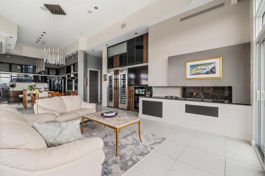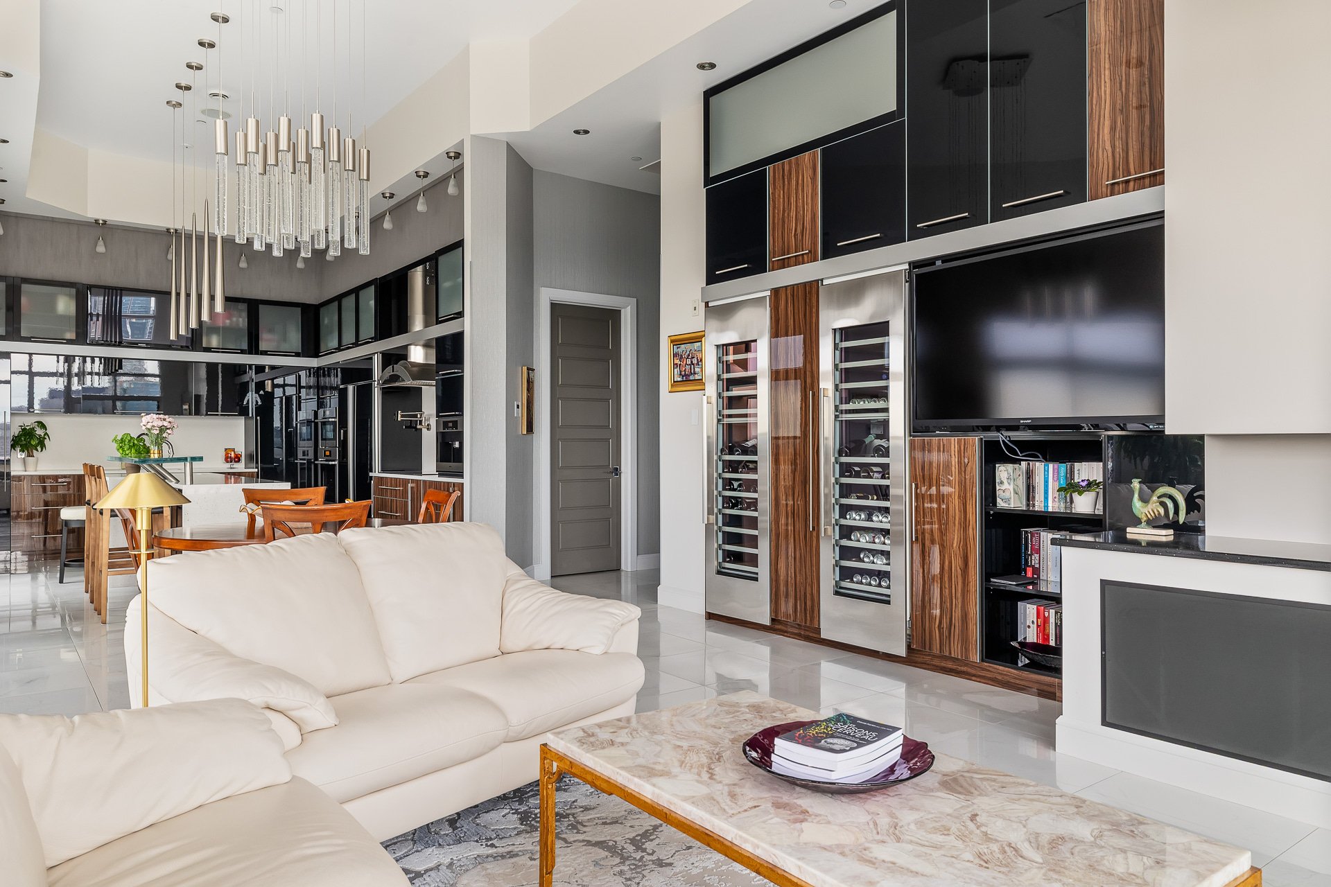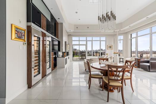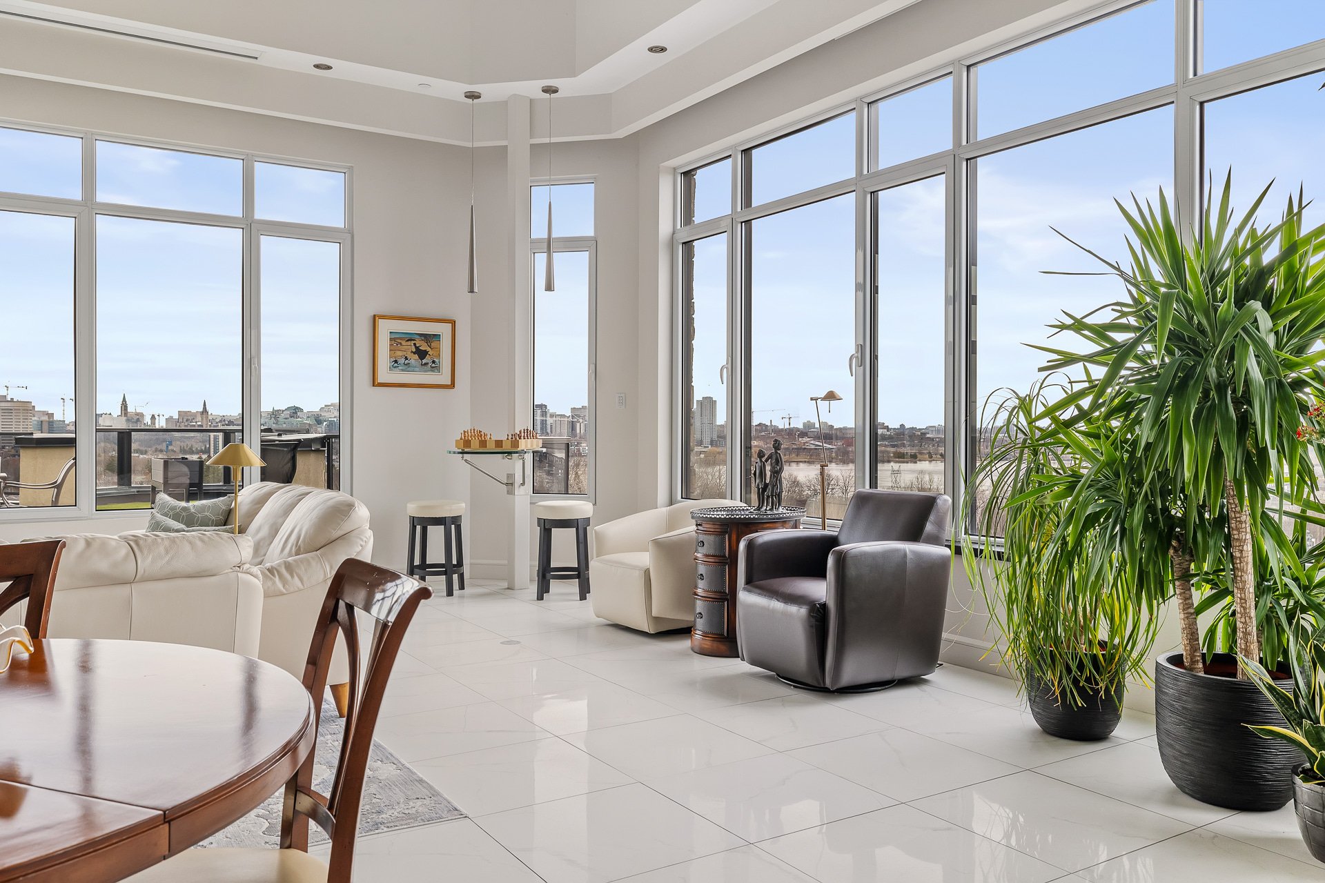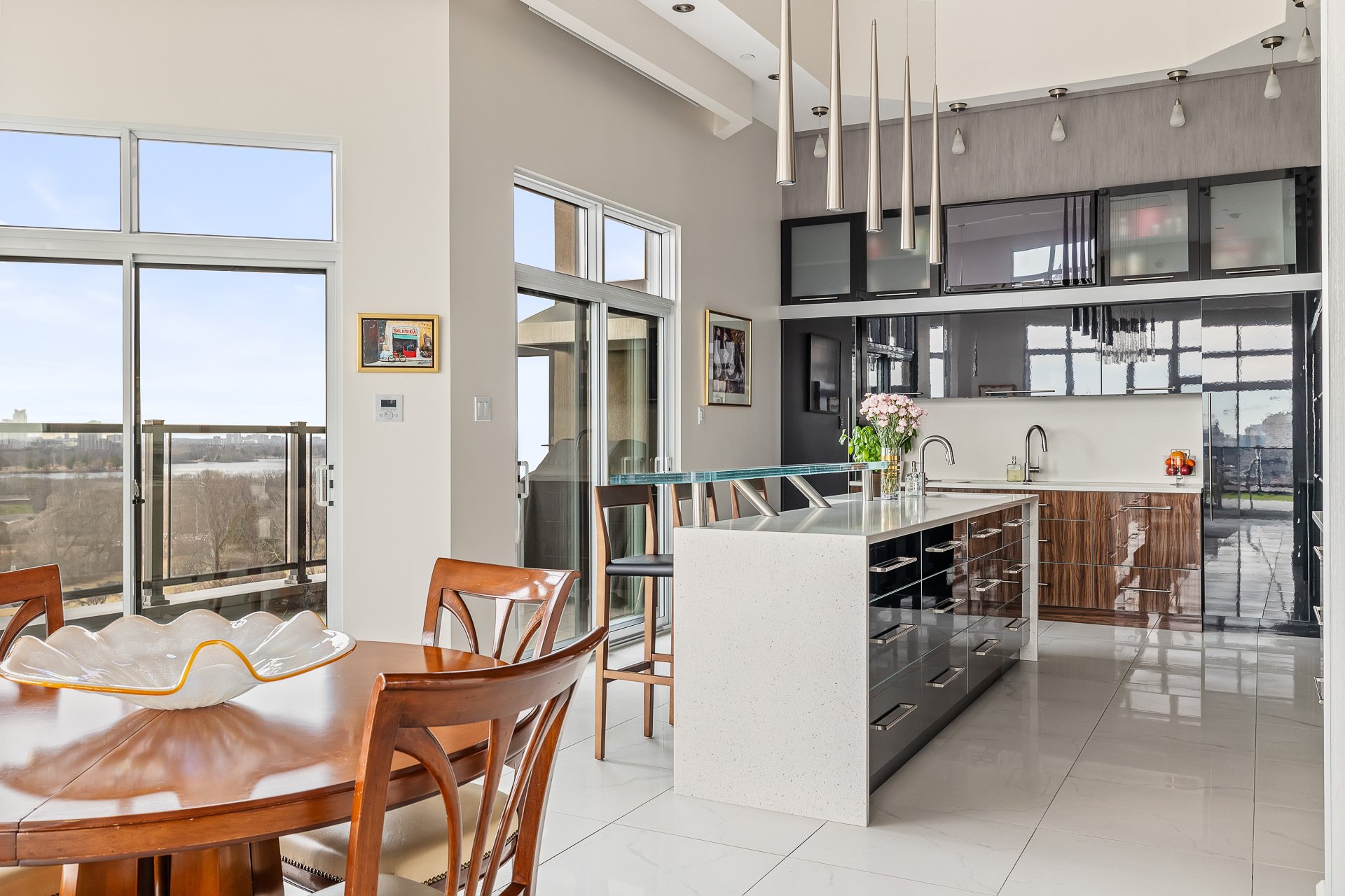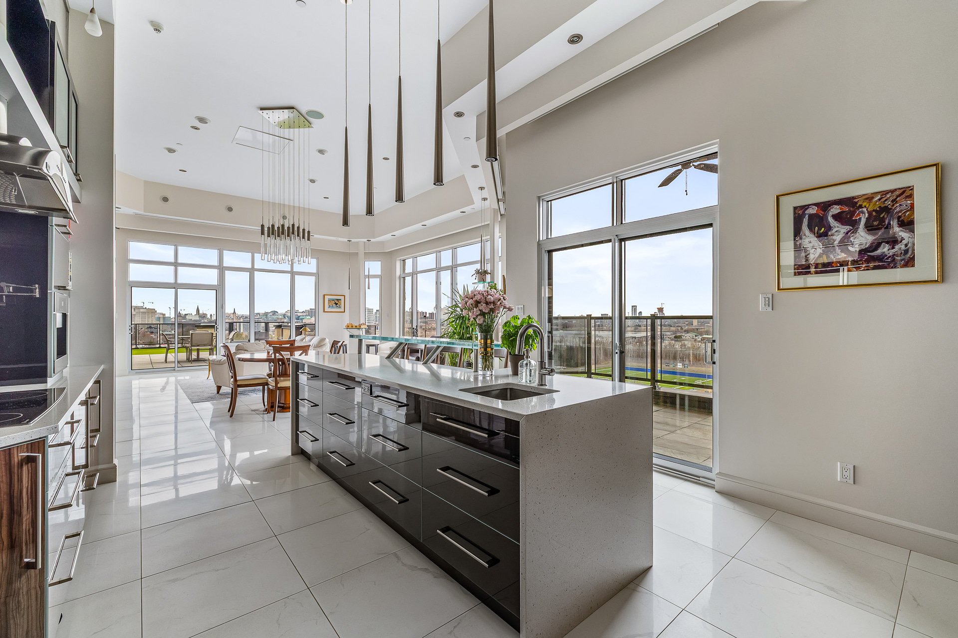 Discover this one-of-a-kind majestic penthouse offering breathtaking panoramic views of Ottawa, Hull, and Gatineau. Perched at the top, it features a massive concrete stone terrace with a gas fireplace, a balcony with a built-in BBQ and stainless chimney hood, along with multiple gas outlets for an unmatched outdoor living experience. Inside, you'll be captivated by the abundant natural light, 14-foot ceilings, and ultra high-end finishes. The home includes three bedrooms, a private four-car garage, and a private multifunctional space--perfect for a gym, office, or studio. The magazine-worthy kitchen is equipped with built-in Miele and Fisher-Paykel appliances, an integrated flat-screen TV, two built-in wine cellars, a glass breakfast counter.The property also features a Crestron smart home system controllable by smartphone, managing audio, video, lighting, and motorized shades, along with a retractable screen and projector, five-zone radiant flooring, and a central vacuum system with integrated hose. The master suite is a serene retreat, complete with automated curtains, a private ensuite bathroom with double vanity, marble backsplash, a marble shower with multi-jet column, and a custom walk-in closet. A truly exceptional property where luxury, technology, and panoramic views come together.