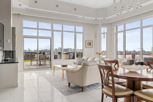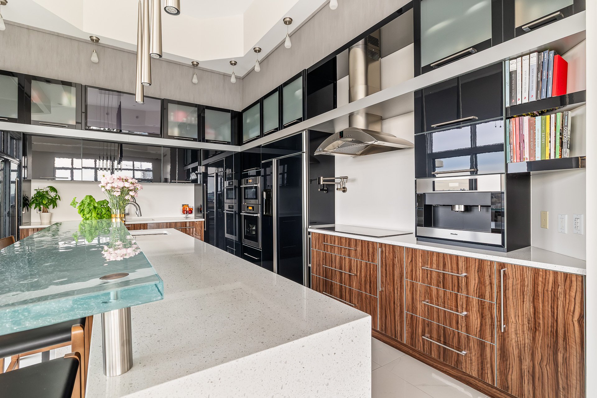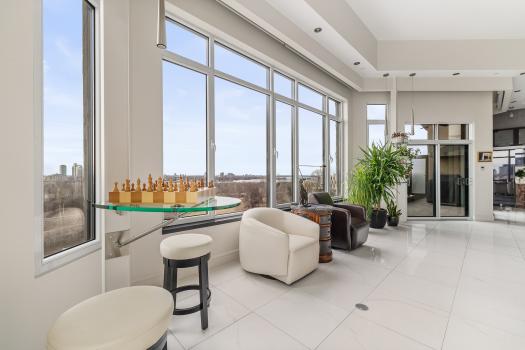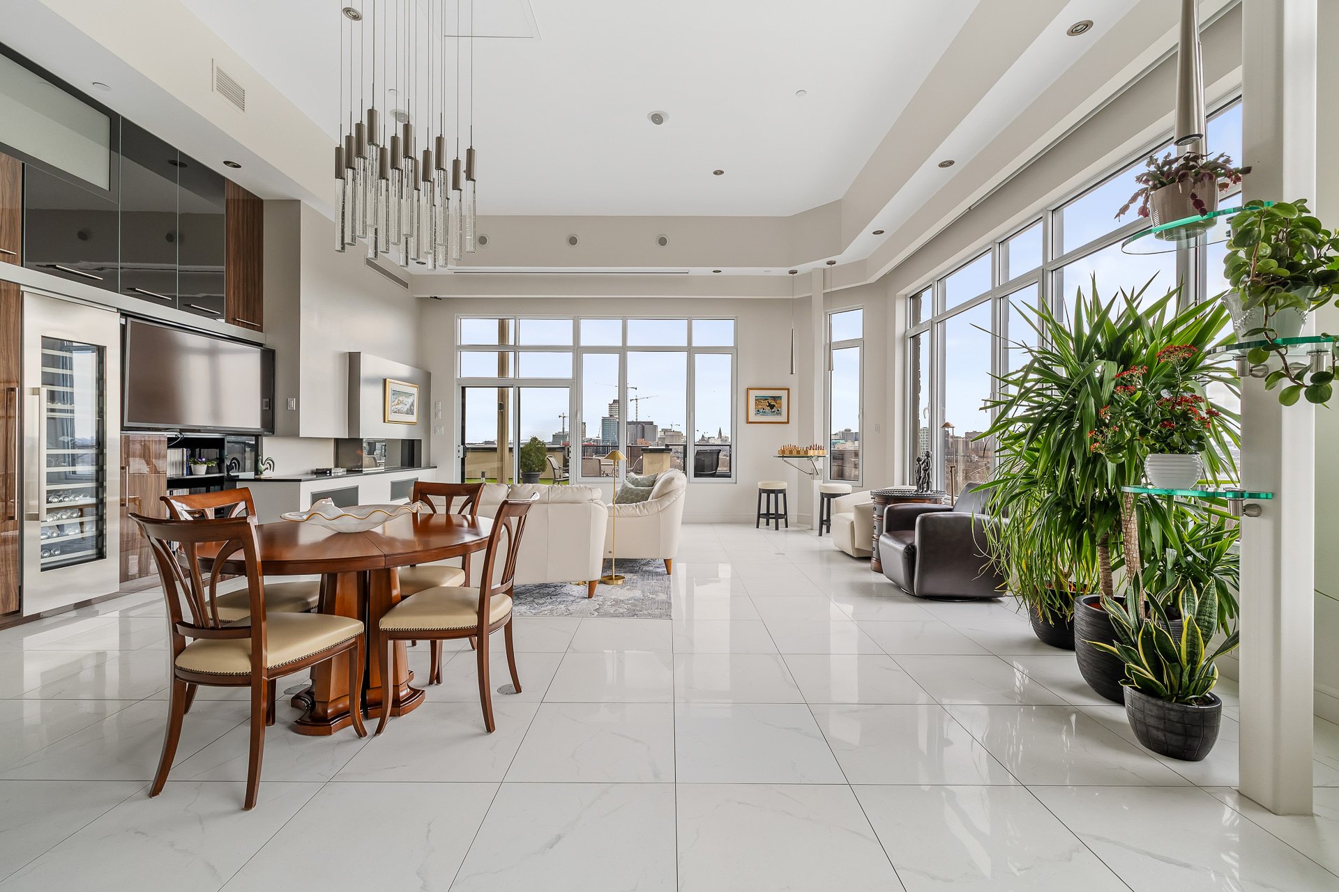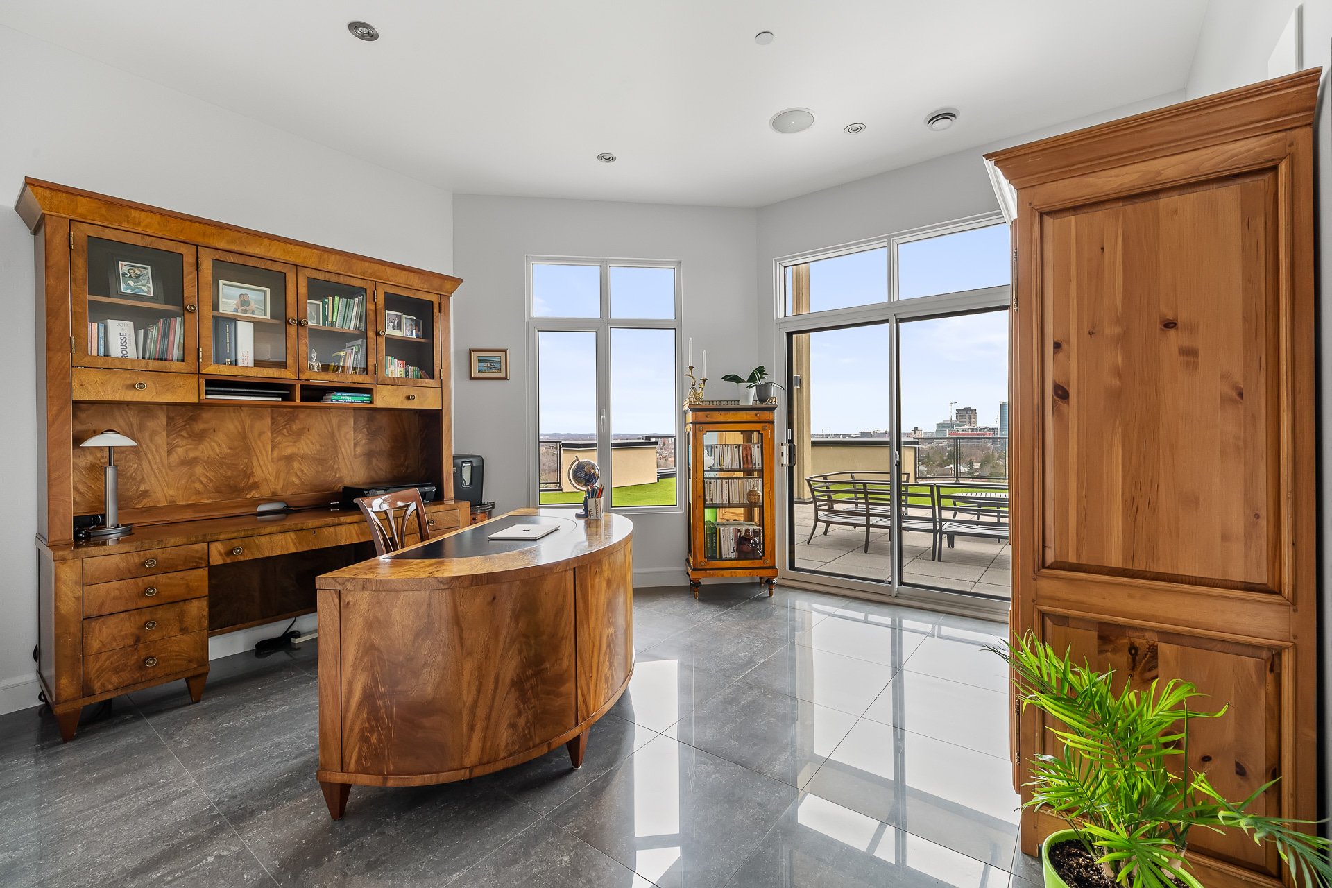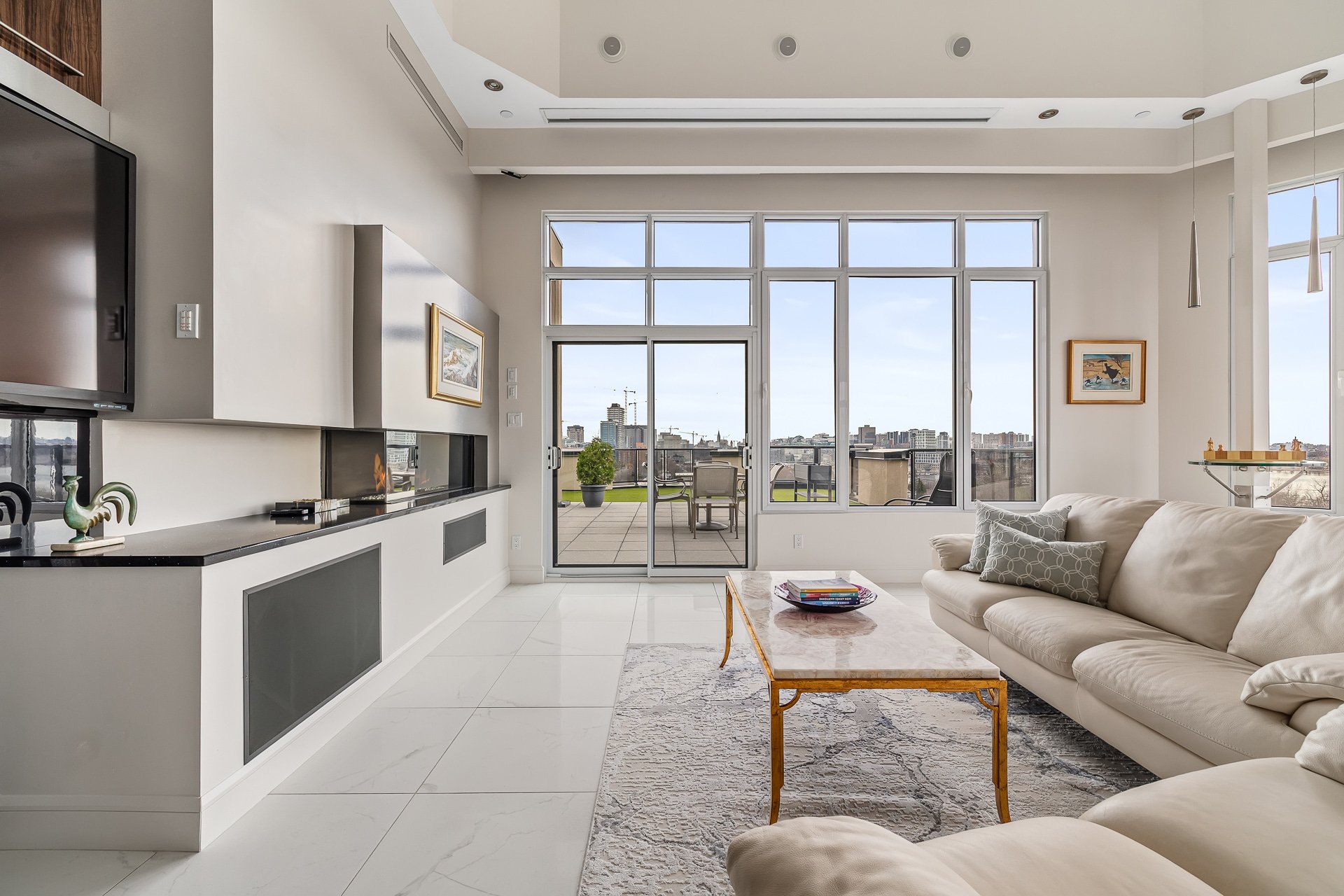 Discover this one-of-a-kind majestic penthouse offering breathtaking panoramic views of Ottawa, Hull, and Gatineau. Perched at the top, it features a massive concrete stone terrace with a gas fireplace, a balcony with a built-in BBQ and stainless chimney hood, along with multiple gas outlets for an unmatched outdoor living experience. Inside, you'll be captivated by the abundant natural light, 14-foot ceilings, and ultra high-end finishes. The home includes three bedrooms, a private four-car garage, and a private multifunctional space--perfect for a gym, office, or studio. The magazine-worthy kitchen is equipped with built-in Miele and Fisher-Paykel appliances, an integrated flat-screen TV, two built-in wine cellars, a glass breakfast counter.The property also features a Crestron smart home system controllable by smartphone, managing audio, video, lighting, and motorized shades, along with a retractable screen and projector, five-zone radiant flooring, and a central vacuum system with integrated hose. The master suite is a serene retreat, complete with automated curtains, a private ensuite bathroom with double vanity, marble backsplash, a marble shower with multi-jet column, and a custom walk-in closet. A truly exceptional property where luxury, technology, and panoramic views come together.