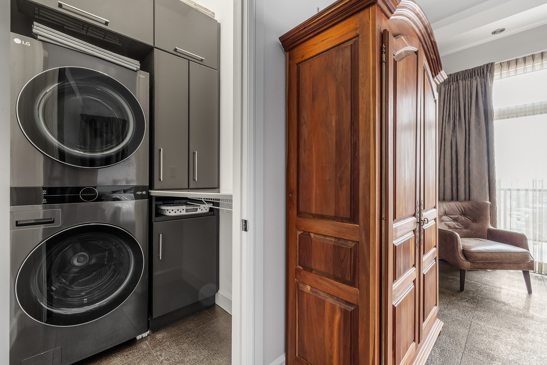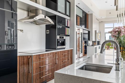 Motorized blinds, 2 televisions, household appliances (dishwasher, refrigerator, stove, oven, coffee machine, 2 wine coolers, washer, dryer), smart home system, curtains, water heater, furnace, projector screen, central vacuum and accessories.