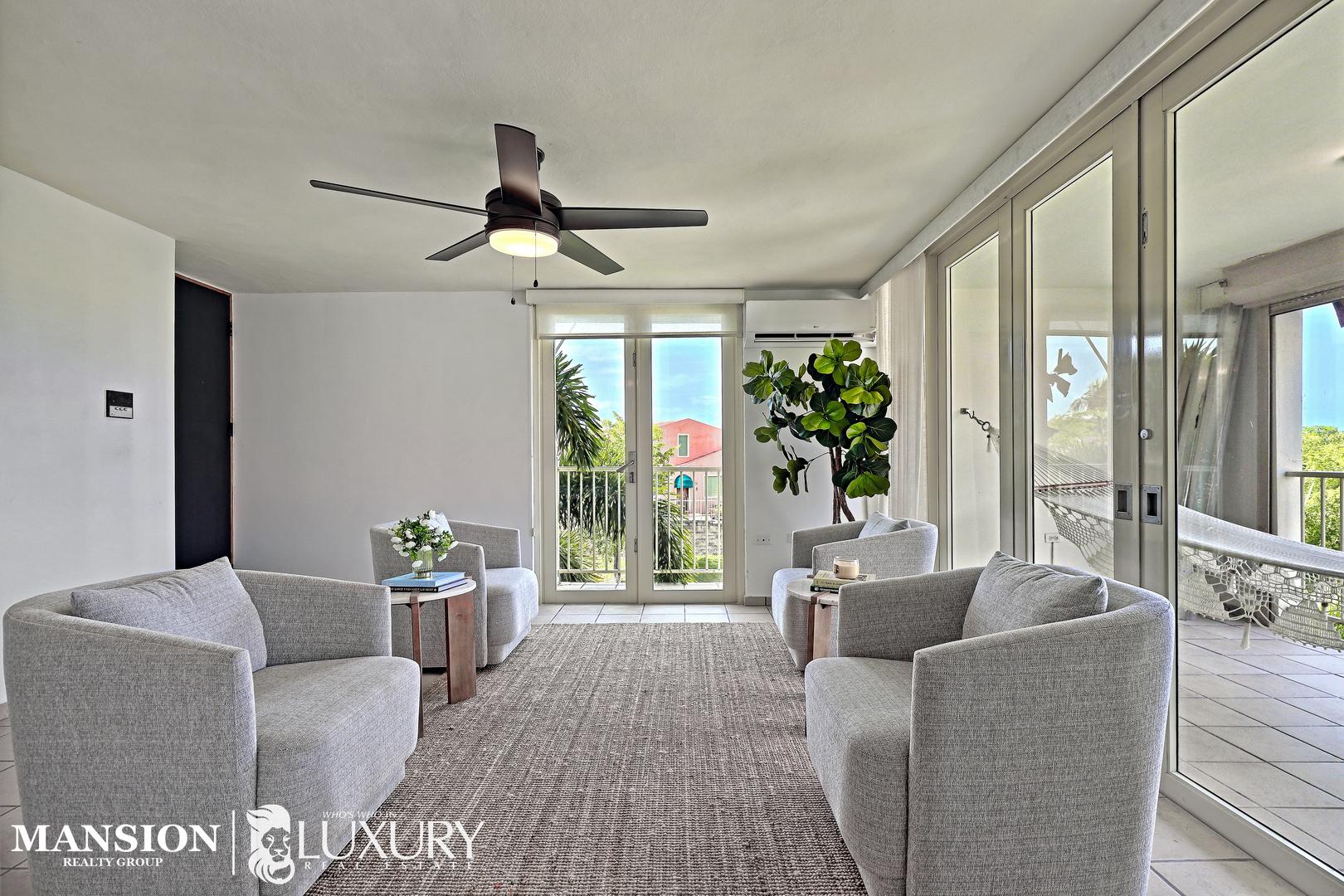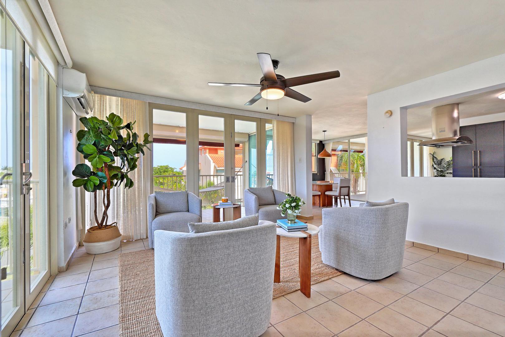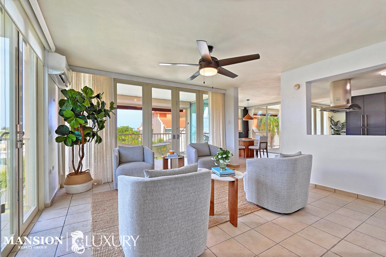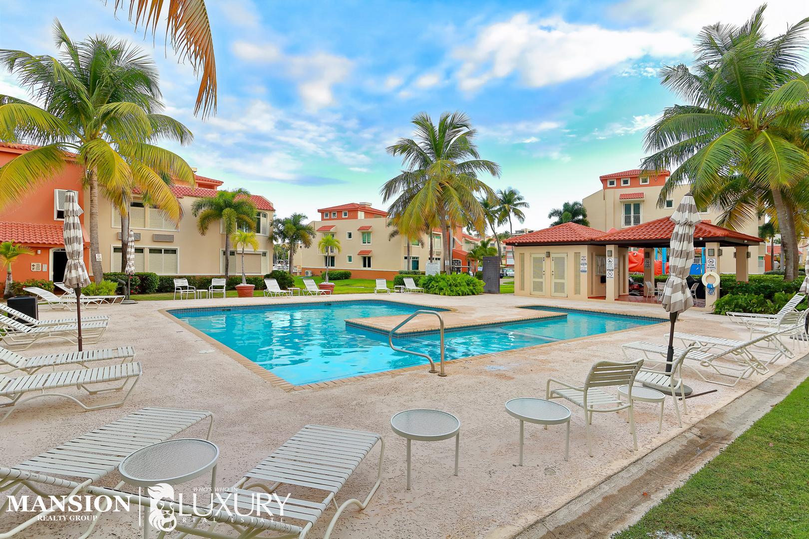 Your chance to own a stunning & elegant third-floor corner unit at Harbour Point in the sought-after Palmas del Mar Resort at Humacao on the east coast of Puerto Rico. This 1,801.74 ft² residence offers one unit per floor, elevator access. Features include 3 bedrooms, 2 full baths, an open kitchen with stainless steel appliances, and sun-filled living, dining, and family spaces. Enjoy two large covered terraces and a unique corner-unit side balcony, with retractable awnings, electric roll-up & Bahama hurricane shutters. Dedicated laundry room, custom window treatments, A/Cs, and 2 assigned parking spots + golf cart parking. Gated community with pool, playground, gazebo, and marina dock access. Palmas del Mar offers a Beach Strip, Golf, Tennis, Athletic & Beach Club, Equestrian Center, private school, restaurants, shops, hiking trails & more. Golf-cart community. No short-term rentals. HB-HOA $276/mo. | PDM-HOA $994/yr. Private tours for qualified buyers only. POF required. Ask for the video!