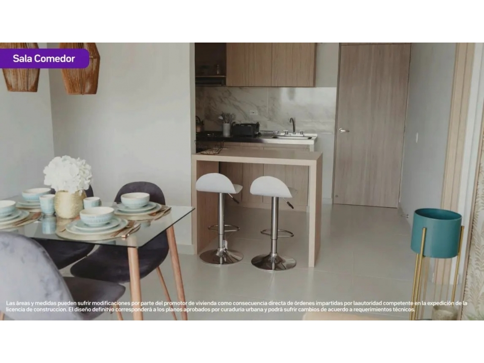 DescripciónUbicado en una de las zonas con mayor valorización de Soledad, este inmueble ofrece un acceso privilegiado a la avenida Circunvalar, la calle 30 y la avenida Simón Bolívar. Rodeado de hospitales, colegios, estaciones de policía, parques e iglesias, también está cerca de los centros comerciales Plaza del Sol, Metropolitano y Panorama, así como de supermercados como Olímpica, Éxito, Ara, Megatiendas y Makro.Este proyecto de torres de 18 pisos incluye una variedad de comodidades: seguridad privada 24 horas, piscina para adultos y niños, parques infantiles, gimnasio biosaludable, cancha múltiple, zonas verdes, kiosco social, salón deportivo, cocina social con terraza BBQ, lobby con recepción y 2 ascensores por torre. Los apartamentos, con áreas construidas desde 58 m² y privadas desde 50 m², cuentan con vestier en la habitación principal, puntos de aire acondicionado en las habitaciones y espacios para closet y mesas de noche. Una oportunidad única en la mejor ubicación.