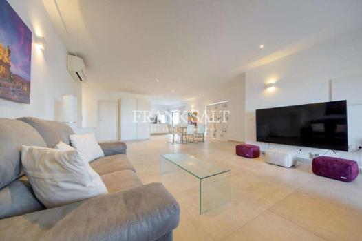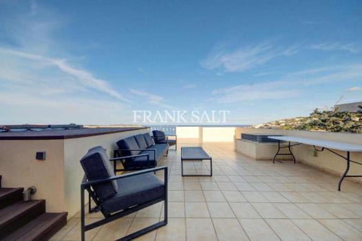 Unique and well-designed FURNISHED DUPLEX PENTHOUSE forming of the prestigious SDA at Tas-Sellum Residence located a few minutes away from Malta’s main sandy beach. Featured with eleven private terraces and a total area of 650sqm split on two levels, this property ensures privacy, boasts plenty of natural light and offers ample space for entertainment, particularly through its impressive terrace equipped with a private hot tub whilst enjoying 180 degrees of superb unobstructed sea views. The lower level comprises an open-plan kitchen, living and dining equipped with a brand-new kitchen, appliances and furniture, and two bedrooms both with en-suite facilities. The upper level is made up of another massive open plan with a fitted kitchen and appliances, a living and dining area, two bedrooms with en-suite facilities, a laundry room and an outdoor area measuring 234 sqm. The property is further complemented by two interconnected Garages. Freehold.