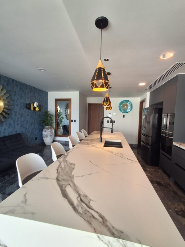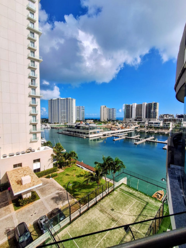 Discover a new level of luxury living in the heart of Puerto Cancún. Shark Tower stands as an architectural icon in Mexico and Latin America, featuring a striking shark-fin design that sets it apart from every other development in the region. From this privileged location, you’re surrounded by stunning views of the Caribbean Sea, the navigable canals, and the most modern marina in Cancún—just steps away from your front door.This exceptional residence, located on the fourth floor, offers the perfect blend of elegance and functionality. The modern kitchen features natural stone countertops and a layout designed for comfort and style, creating an exceptional culinary experience. Floor-to-ceiling windows fill the dining area with natural light while framing spectacular panoramic views of the Caribbean.The bedroom is a serene retreat, beautifully designed with a walk-in closet and a full bathroom finished in natural stone. You’ll also find a guest bathroom, laundry room, and an expansive 40-square-meter terrace overlooking the turquoise sea—ideal for relaxing or entertaining. The residence includes one parking space.Shark Tower offers world-class amenities, including an infinity pool, jacuzzi, gym, spa, paddle court, business center, event hall, and a stunning pool lounge. Its innovative Shark Lab reflects the project’s commitment to sustainability, dedicating a portion of sales to protect endangered shark species.