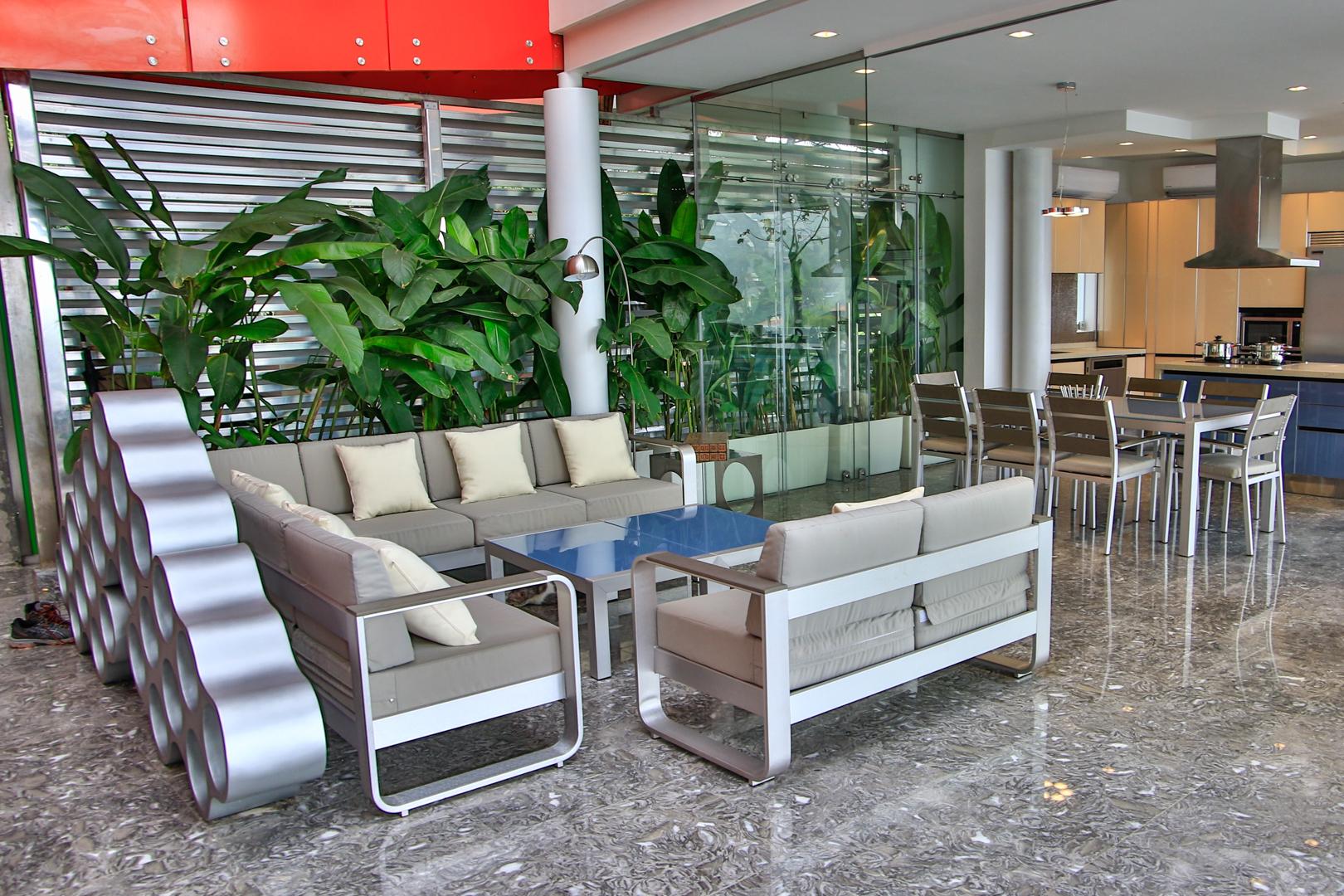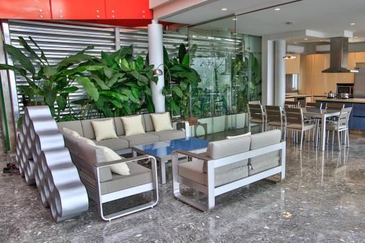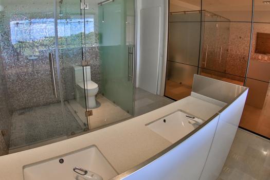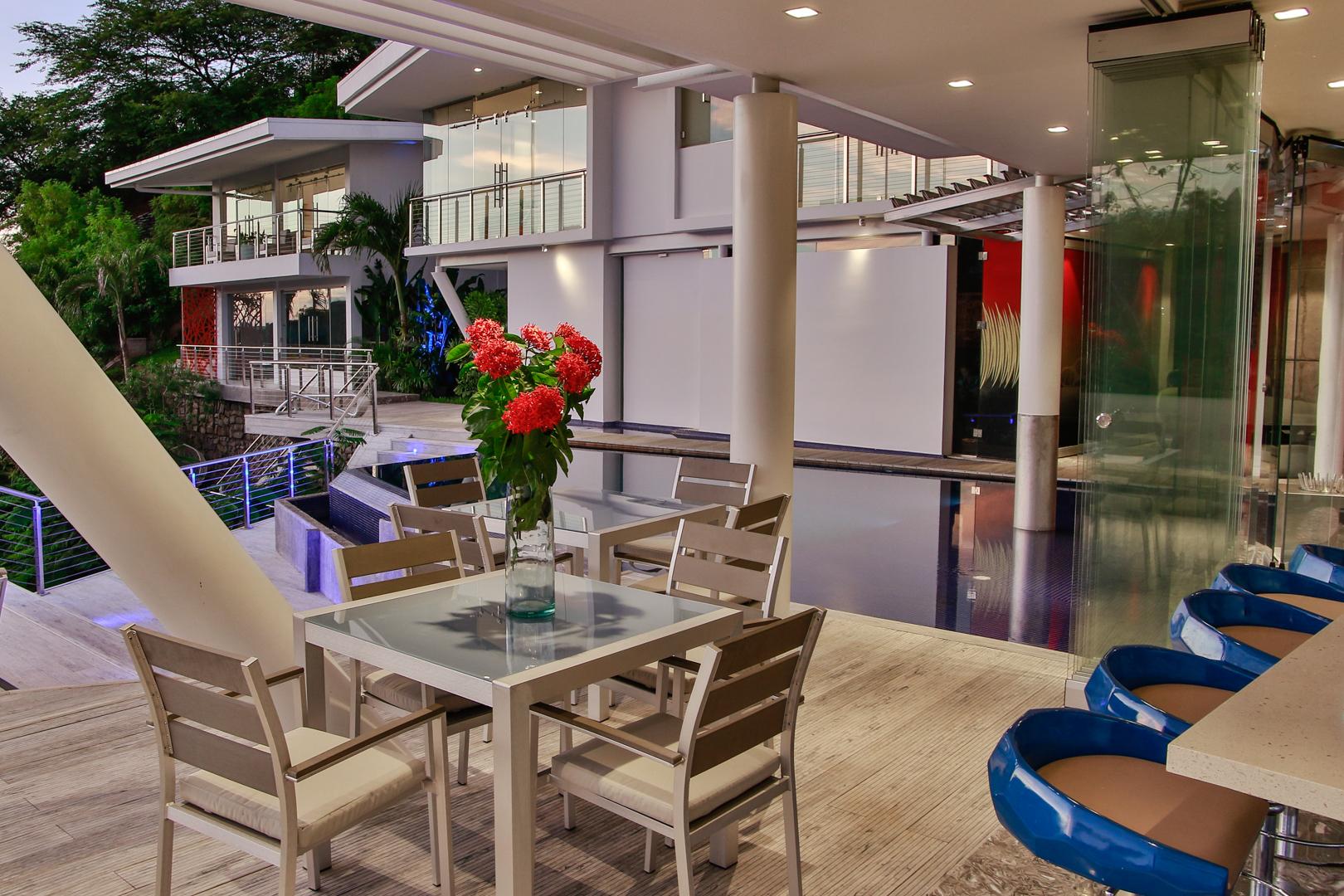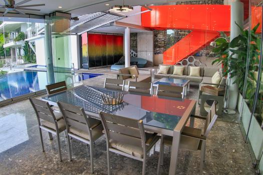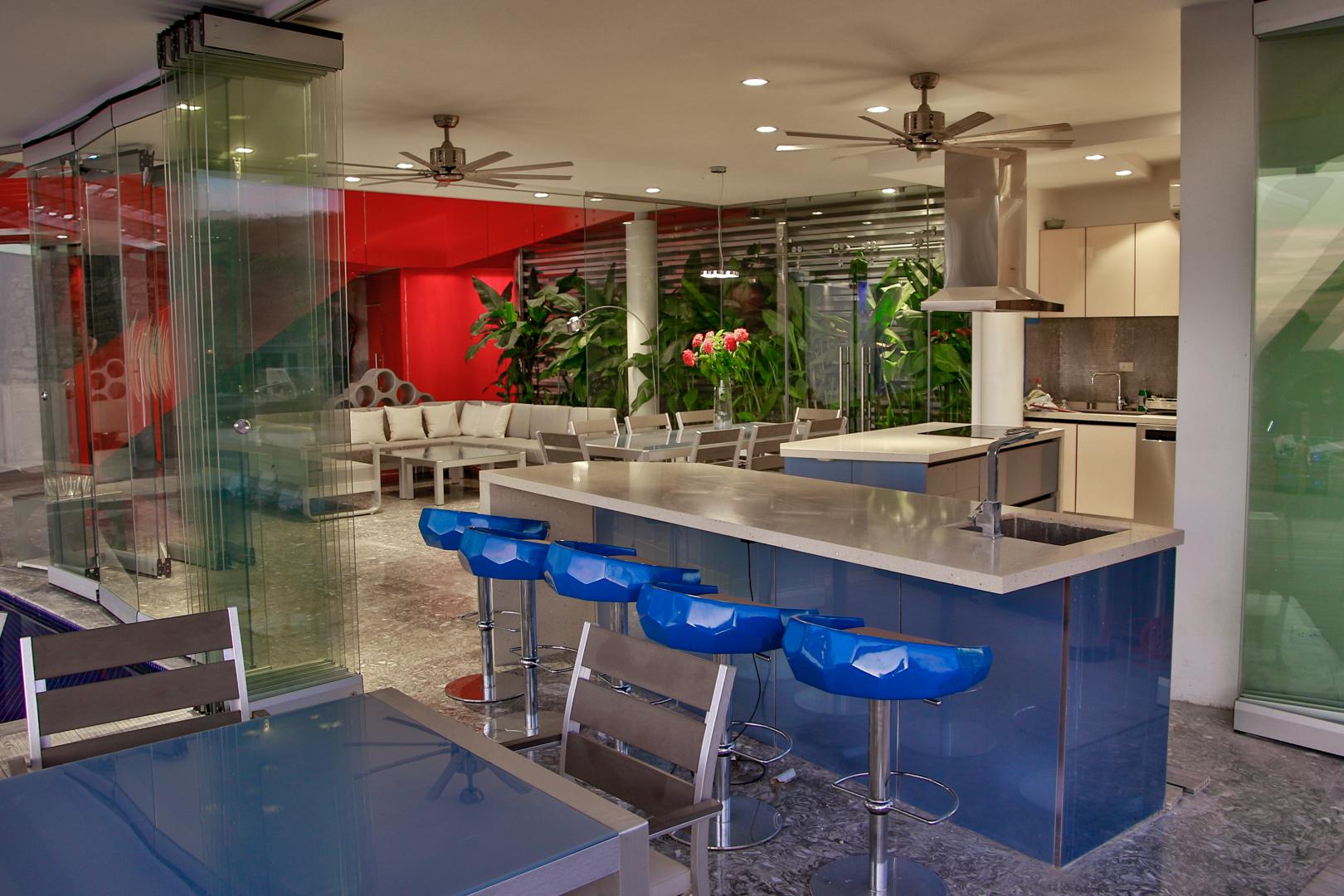 From the moment you enter you will discover an open living space connecting the large kitchen and dining and entertaining areas, surrounded by unique floor to ceiling glass walls that open completely, allowing views in every direction. The kitchen is sleek, stylish and modern, designed to keep up with the gourmet and look amazing. The walls open onto the outdoor living area and the multi-level terraces around the infinity pool with its beautiful teak walkway. Imagine having dinner out here every night and listening to the tropical sounds and the waves.