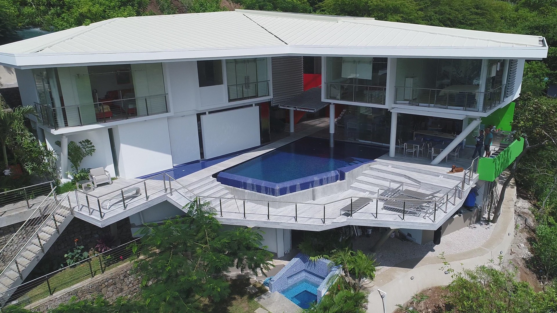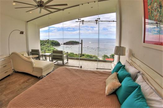 There is a ground floor garden suite that is handicap accessible and a large media room. Last, but not least, there is an incredible honeymoon suite with a wall of glass that overlooks the boats and beach bay of Playa Ocotal.