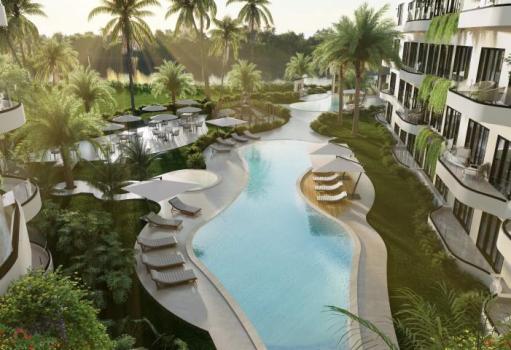 Project Overview: This residential development consists of elegant 1 and 2-bedroom apartments ranging from 73 m² to 261 m². The upper-floor condos come with private rooftop terraces, offering a luxurious and spacious outdoor living area. The 6-story buildings feature underground parking, and each unit includes white line appliances, such as a refrigerator, stove, extractor fan, air conditioners, washer/dryer, and water heater. All apartments also come with large balconies perfect for enjoying the tropical views.