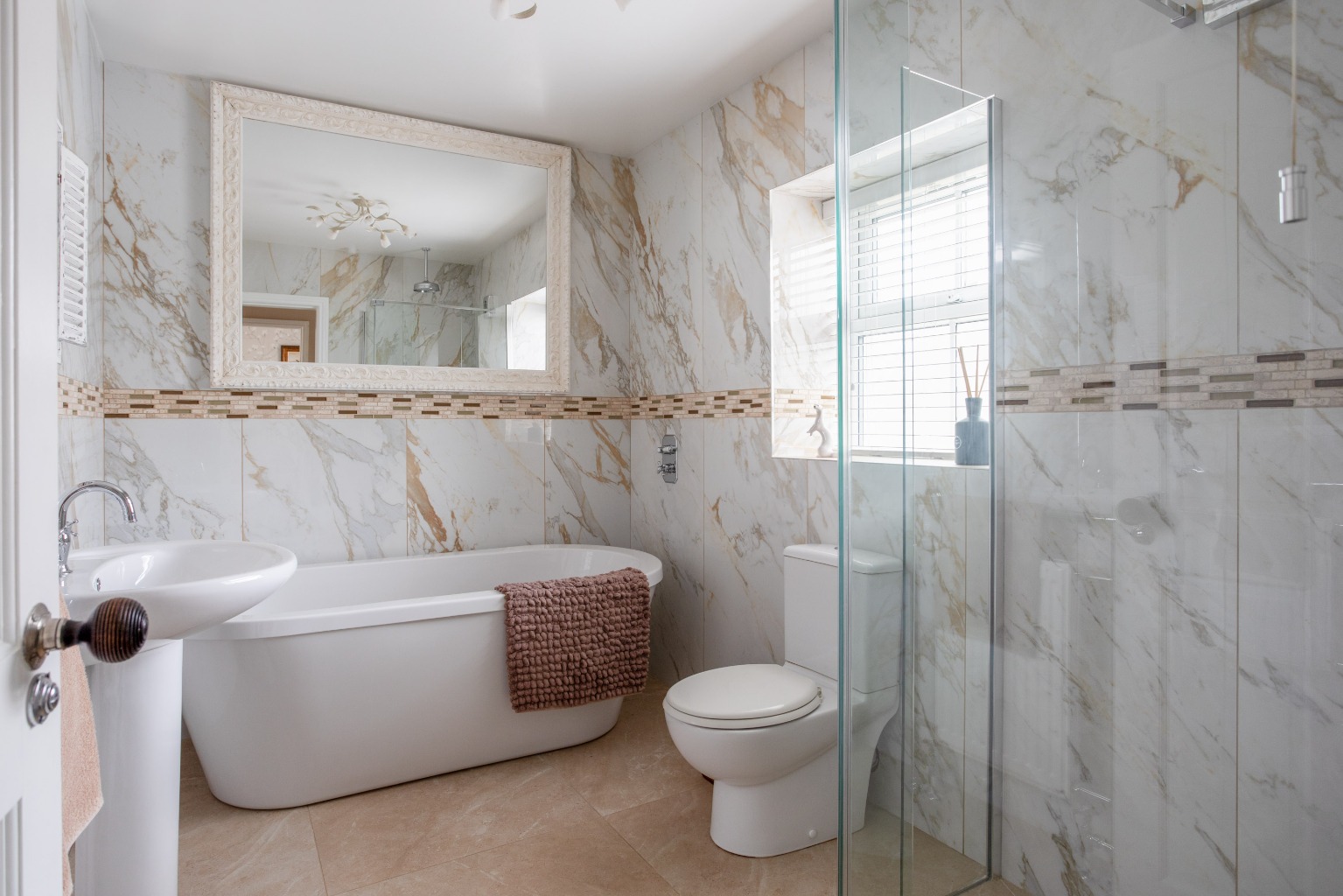 Upstairs, there are four well-proportioned bedrooms. The principal bedroom has a versatile walk-in dressing room or nursery and an en-suite shower room. The other bedrooms are served by a generous house bathroom.