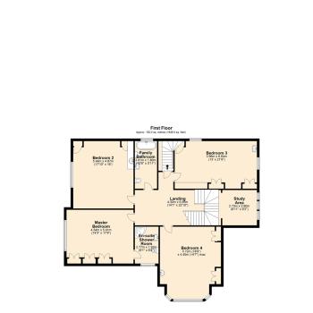 First Floor: Landing with Study Area, the Master Bedroom with En-Suite Shower Room, Bedrooms 2-4 and Family Bathroom.