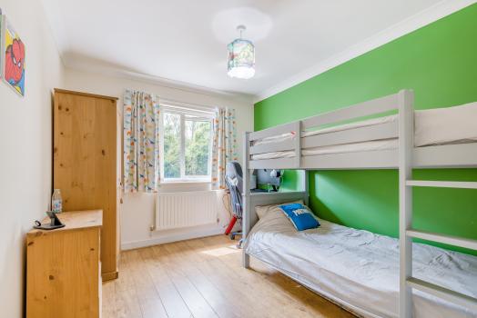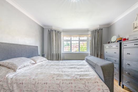 On the first floor, a light and airy landing leads to four double bedrooms. The generous main bedroom has a bay window overlooking the front of the property and benefits from attractive, contemporary-style, built-in wardrobes. It also has a luxurious ensuite bathroom with both a bath and a step-in shower cubicle with a power shower.