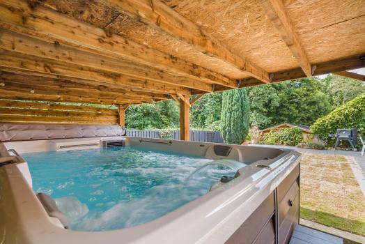 Outside - The house is approached over a brick paved driveway which provides off-road parking for two vehicles, in front of the integral double garage with remote control roller garage door. Alongside the driveway is an area of level lawn with mature borders and shrubs. The enclosed, landscaped, rear garden includes an area of recently re-turfed natural lawn and a large paved patio. An impressive feature is the swim spa hot tub (this is available subject to negotiation) which is housed in an attractive dark wood pergola.