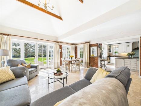 This well presented detached chalet house is situated on a sought after gated development and enjoys a plot of approximately 1.4 acres leading down to the Leaden Stour. The property features 4 bedrooms, 3 bathrooms and 4 reception areas, as well as benefitting from a double garage and ample parking