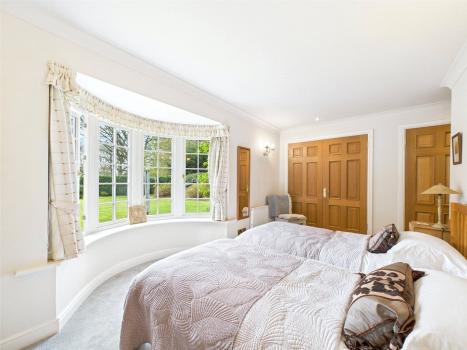 Stairs from the entrance hall lead to the first floor landing with two storage cupboards including an airing cupboard. The master bedroom has a window overlooking the rear garden. There is a dressing room as well as an ensuite comprising wc, wash hand basin, bath and separate shower unit. Bedroom two also enjoys a pleasant view over the rear garden and has an ensuite comprising wc, wash hand basin and shower unit.