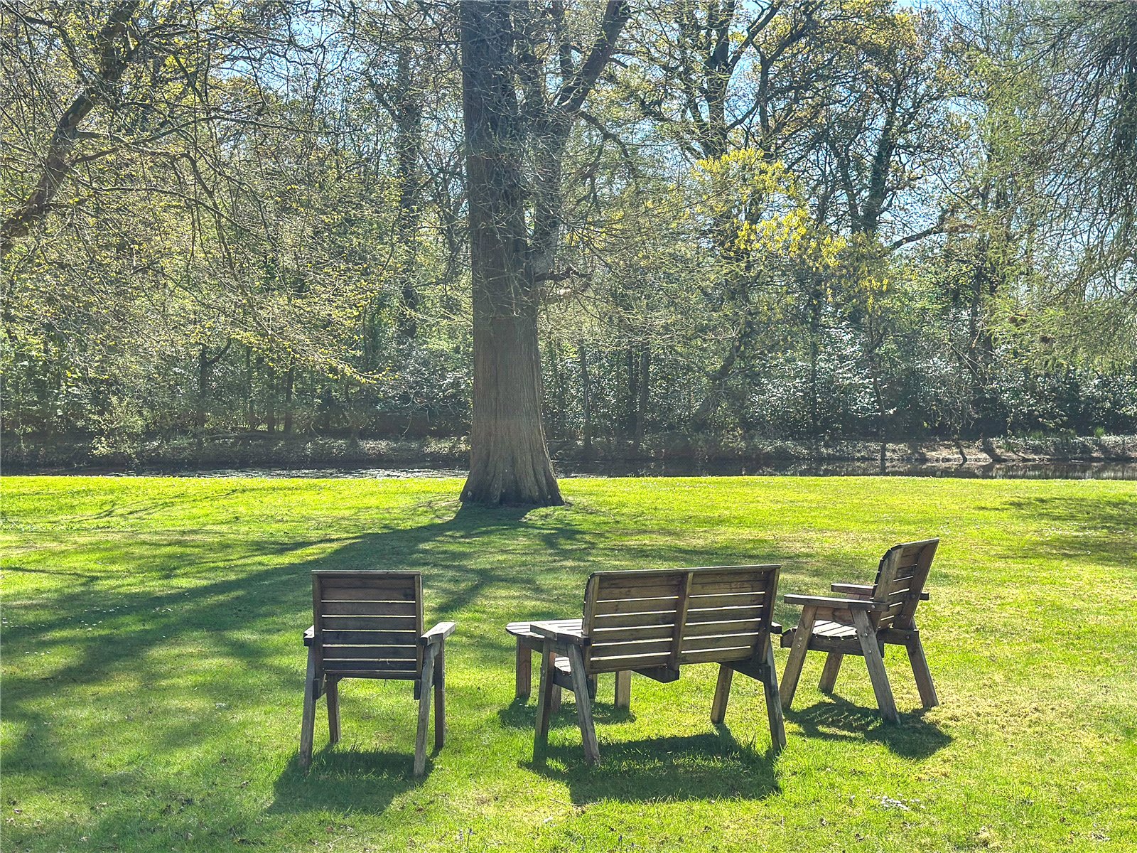 The rear garden is laid mainly to lawn with some mature shrub and flower borders. The garden leads down to the picturesque Leaden Stour (a tributary of the nearby River Stour) and buzzes with wildlife. There is a patio area immediately to the rear of the property and the garden benefits from a sunny southerly aspect.