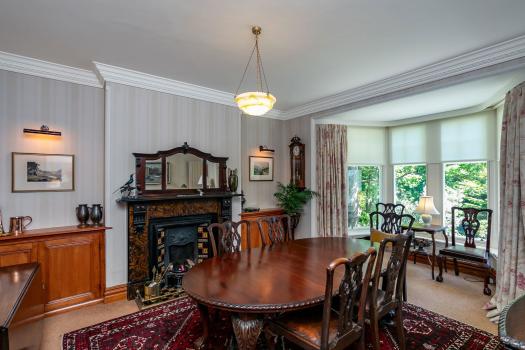 - Dining room with original fireplace