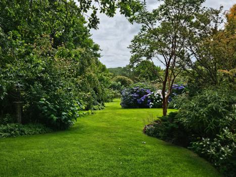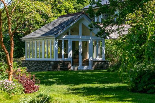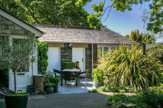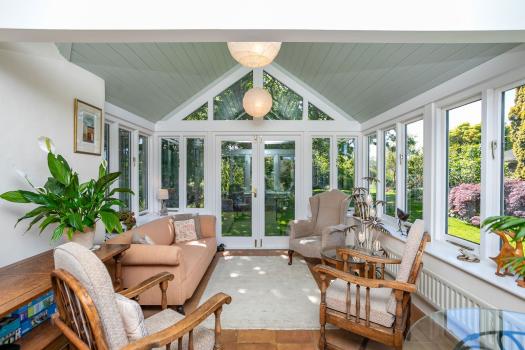 - The garden room, fully glazed with French doors opening onto the garden and views to Black and White Combe and Mid Lo Hill