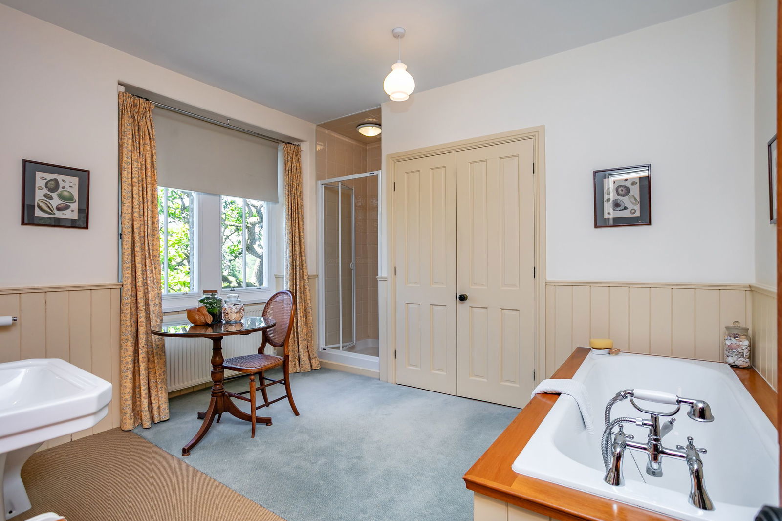 Available by way of further negotiation in the dining room are the table, chairs and sideboard, the Scandi style day bed in the porch and the freestanding wardrobes and dressing tables in the guest bedrooms.