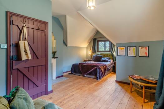 The top floor of Clomendy Wood is an exciting and innovative space. Among the highlights is a beautifully renovated 'bunk room,' tucked into the eaves, offering a fun and creative sleeping space. One of the showstoppers of the home is a bespoke cinema room, soundproofed and equipped with a theater-style setup, featuring original stall-style chairs from a London theatre a truly special feature for cinema lovers.
