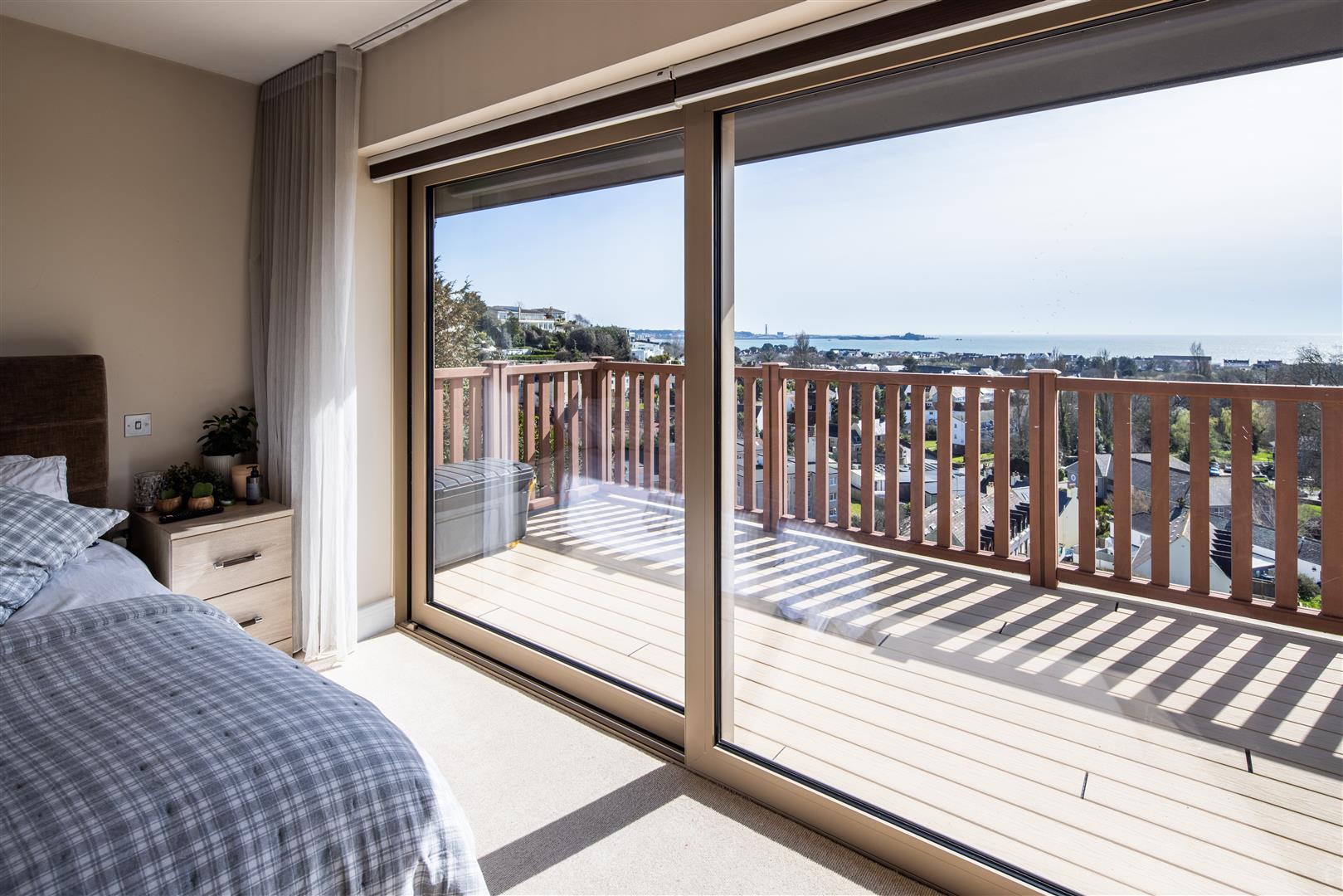 The lower ground level hosts three spacious bedrooms, each designed with comfort and privacy in mind. Both levels benefit from expansive terraces that extend from the principal rooms, offering panoramic vistas of the bay. The lower ground floor has recently enhanced with a separate home office featuring its own private entrance, the property is now perfectly equipped for modern living.