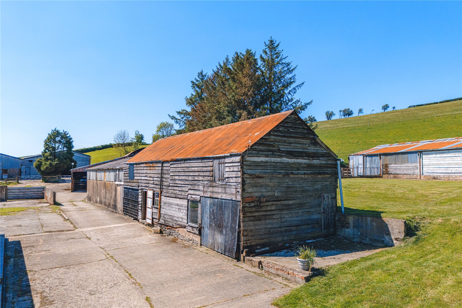 The main family home is a blank canvas, ready for a buyer to personalize and transform. The recently completed two bedroom barn conversion is perfect for multi-generational living or can be used as a rental property to generate income. The 27 acres of land are divided into paddocks, and the versatile outbuildings are ideal for agricultural use, workshops, or storage.