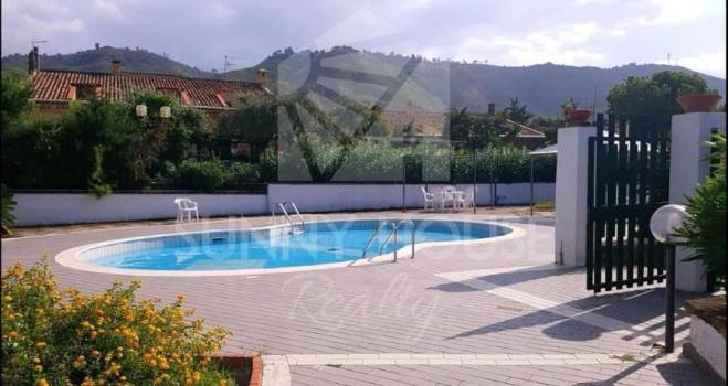 The villa includes two parking spaces and grants access to two residence swimming pools, as well as a mini playground area for children. The total garden area spans approximately 500 sqm, while the villa itself covers around 201 sqm. Additionally, residents enjoy private access to the stunning beach, where the crystal-clear waters of Cefalù await.