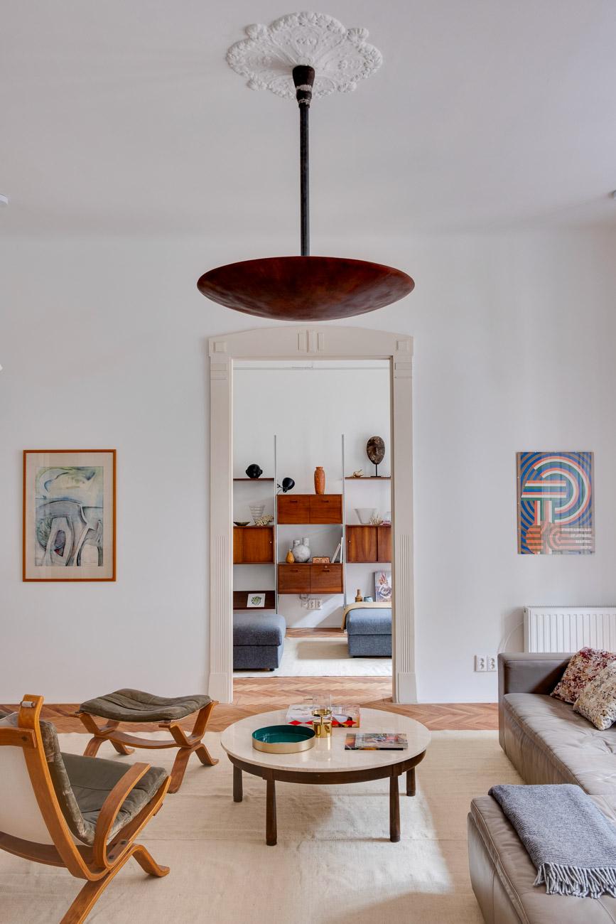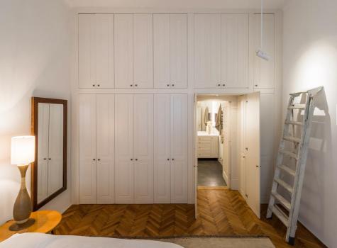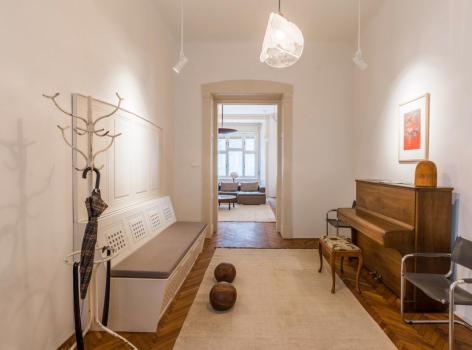 The apartment design was a collaboration between L.V. Rowe in California (architect) and Eszter Bertoty in Budapest (interior designer), featuring classical Art Nouveau beauty and state-of-the-art- mechanical functions, kitchen and bathrooms in a way that complements the original style.
