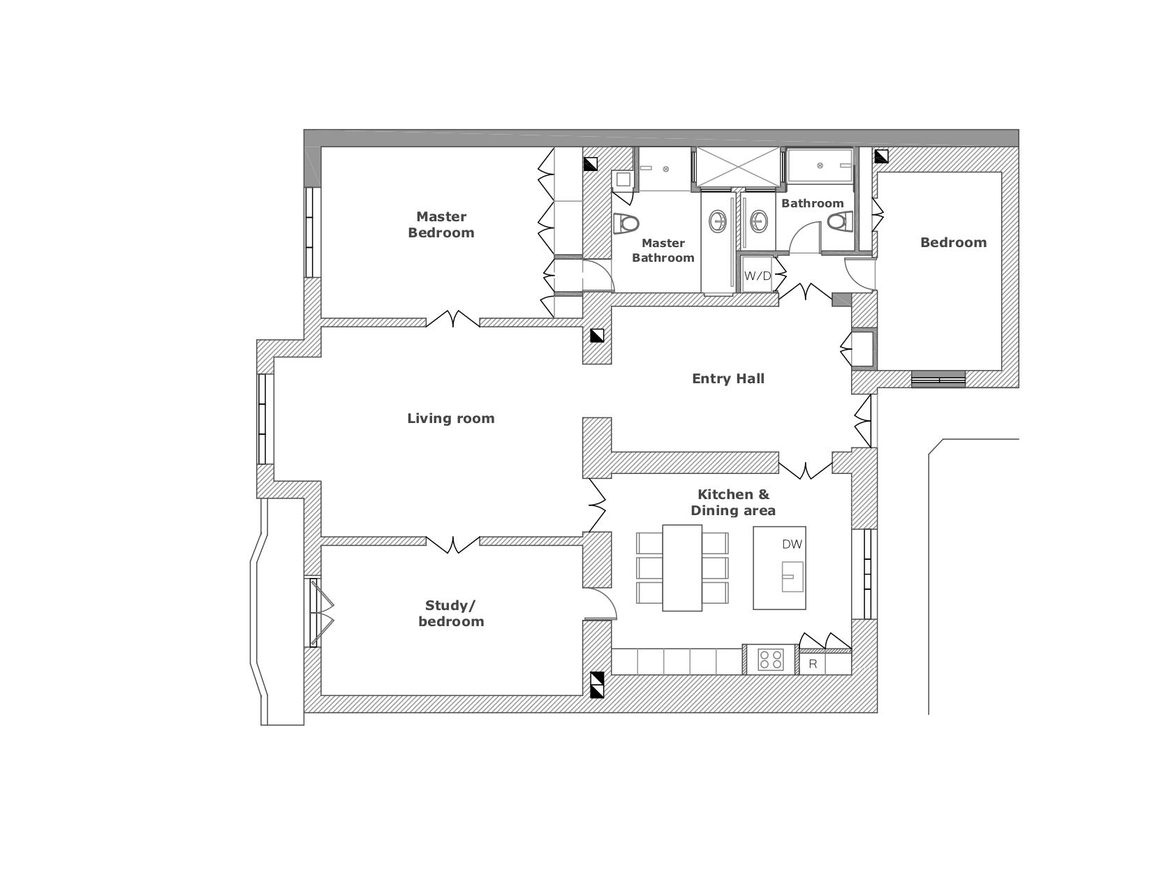 Spreading over 155 square meters, this flat features a large entry hall with a utility room, a big, spacious kitchen with a dining area to entertain. The living room is reasonably sized and sunlit, furthermore there are two bedrooms, both with their own private, en-suite bathrooms and a study, which can be turned into a third bedroom, and finally, a sit-out balcony completes the picture of the perfect layout.